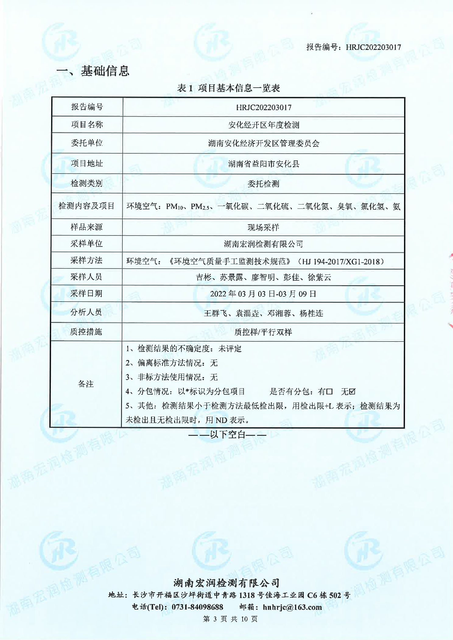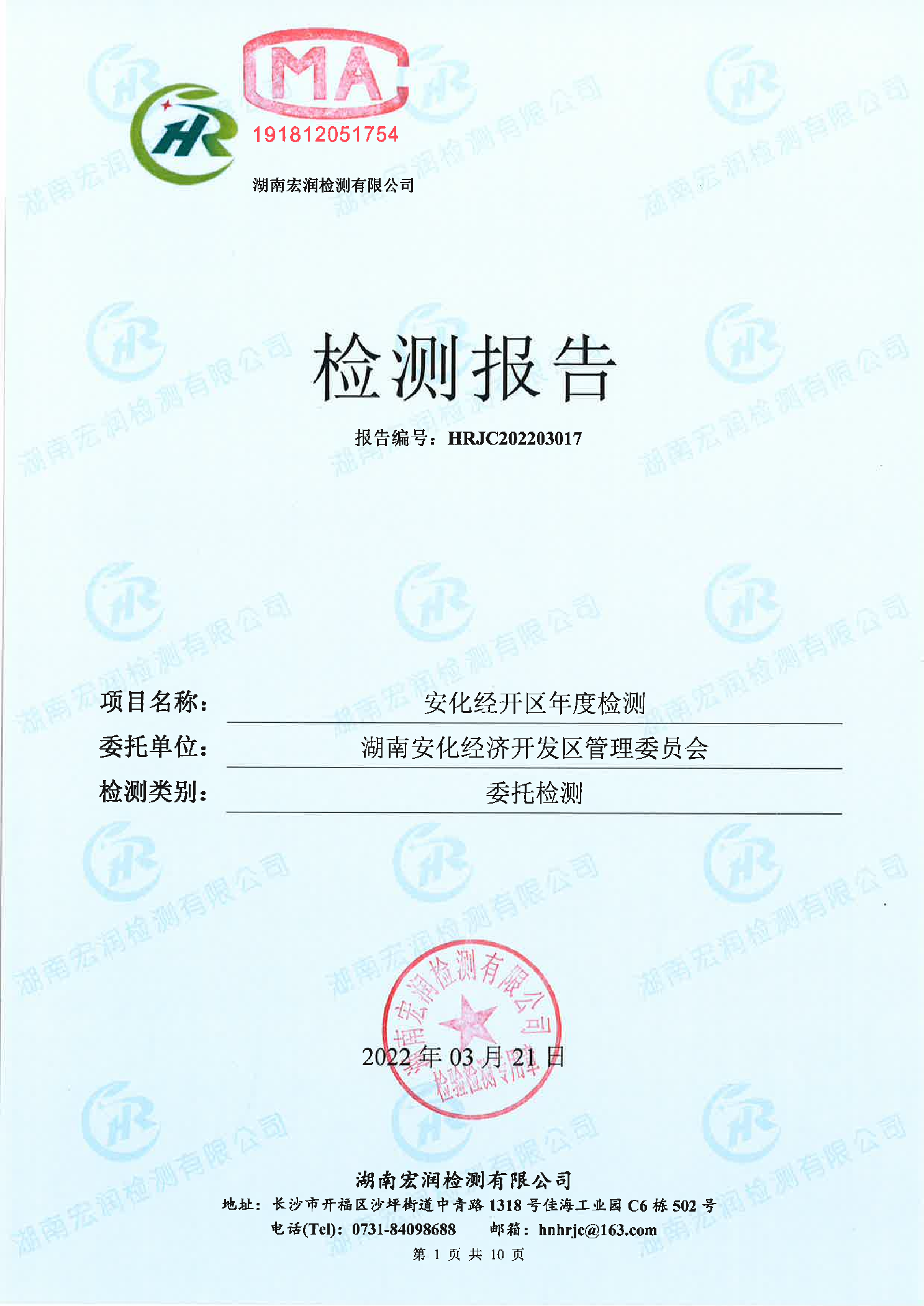安化经开区2022年园区环境质量检测报告(第一季度)