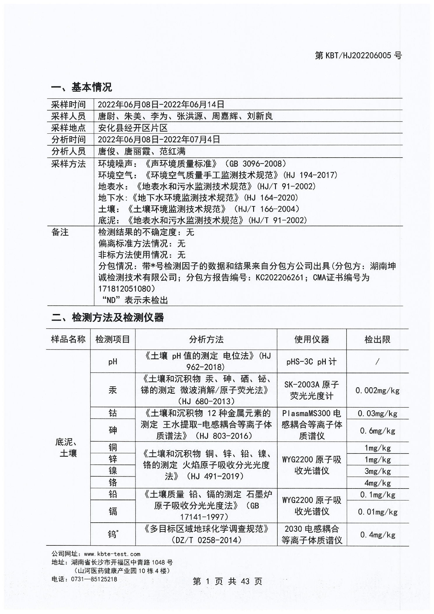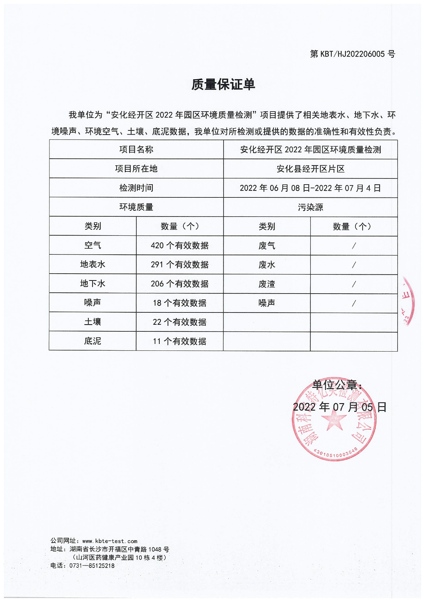 安化经开区2022年园区环境质量检测报告(第二季度)