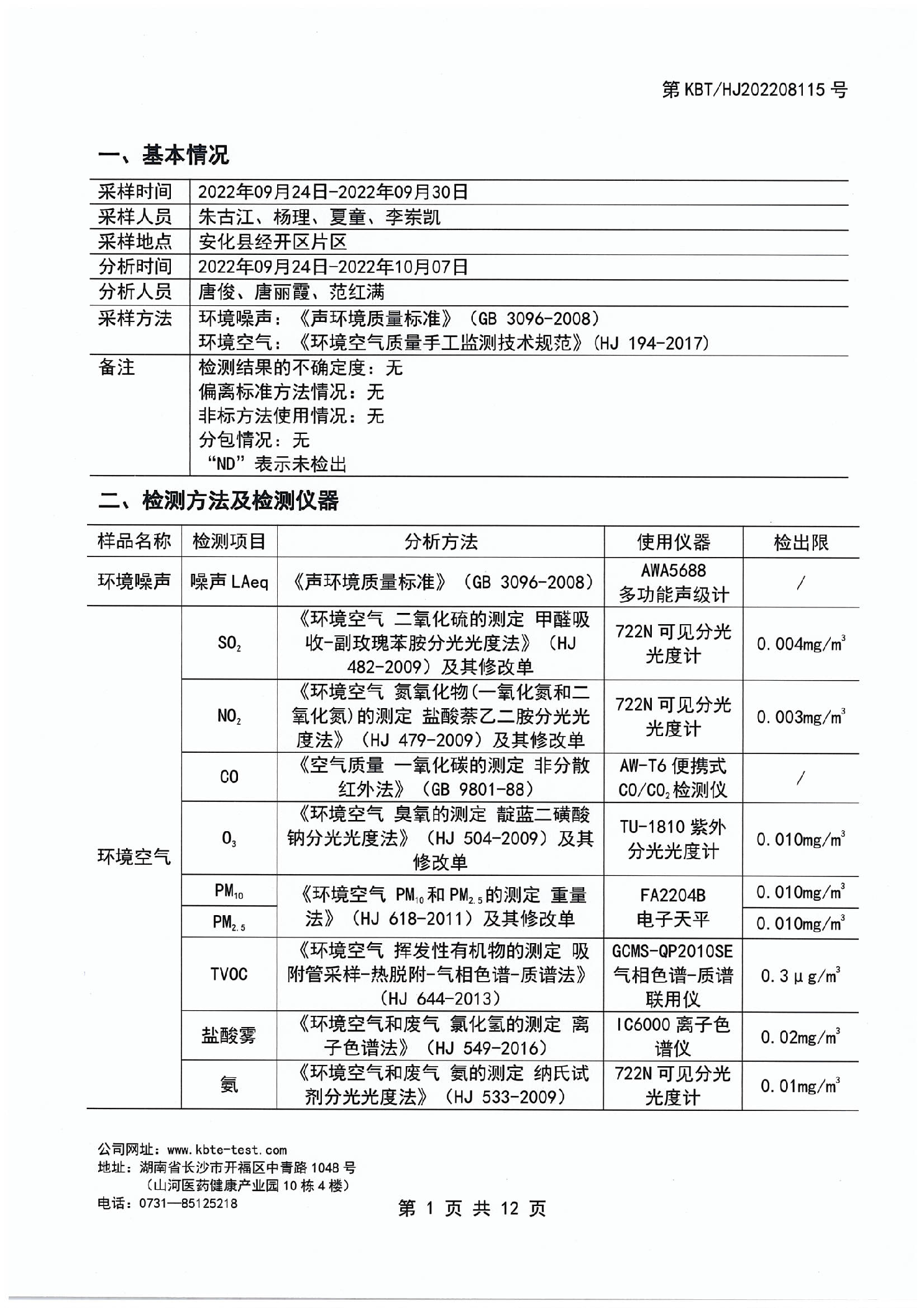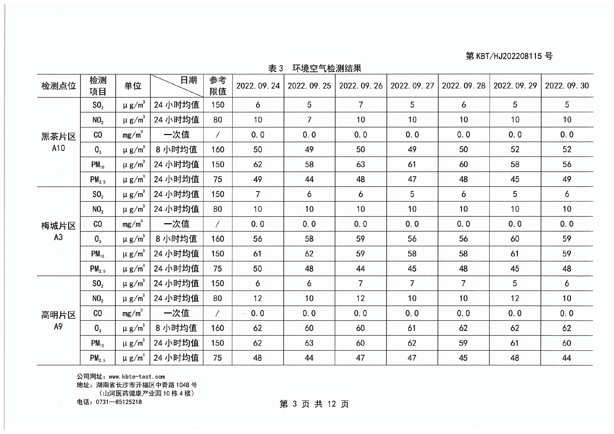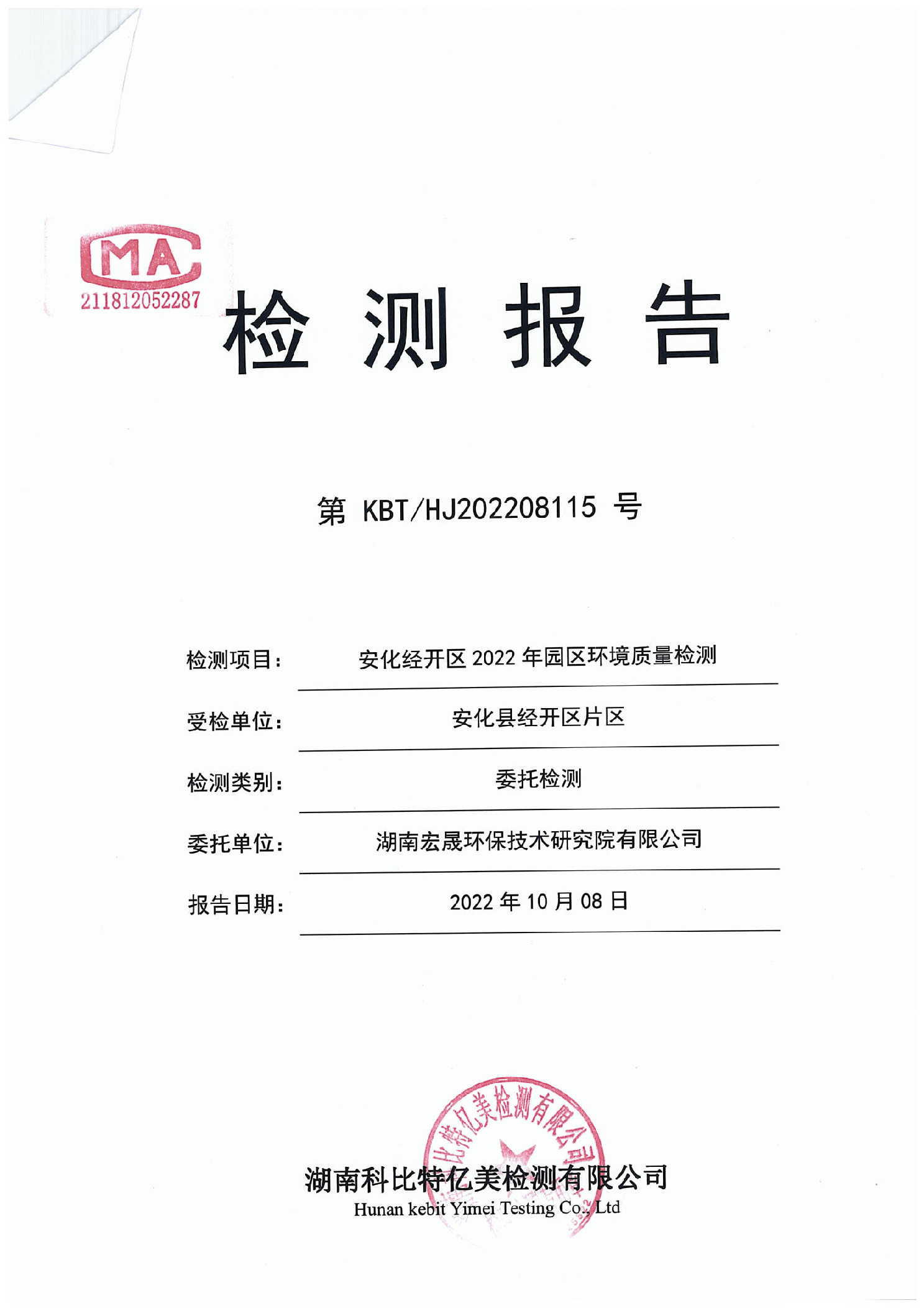 安化经开区2022年园区环境质量检测报告(第三季度)