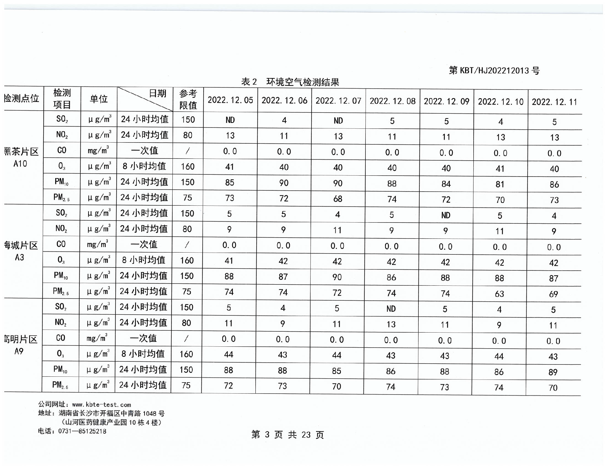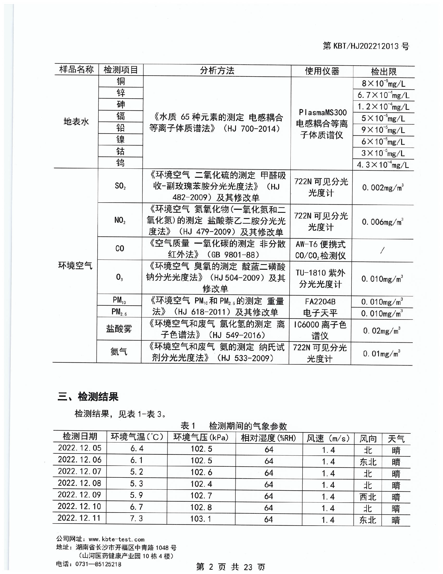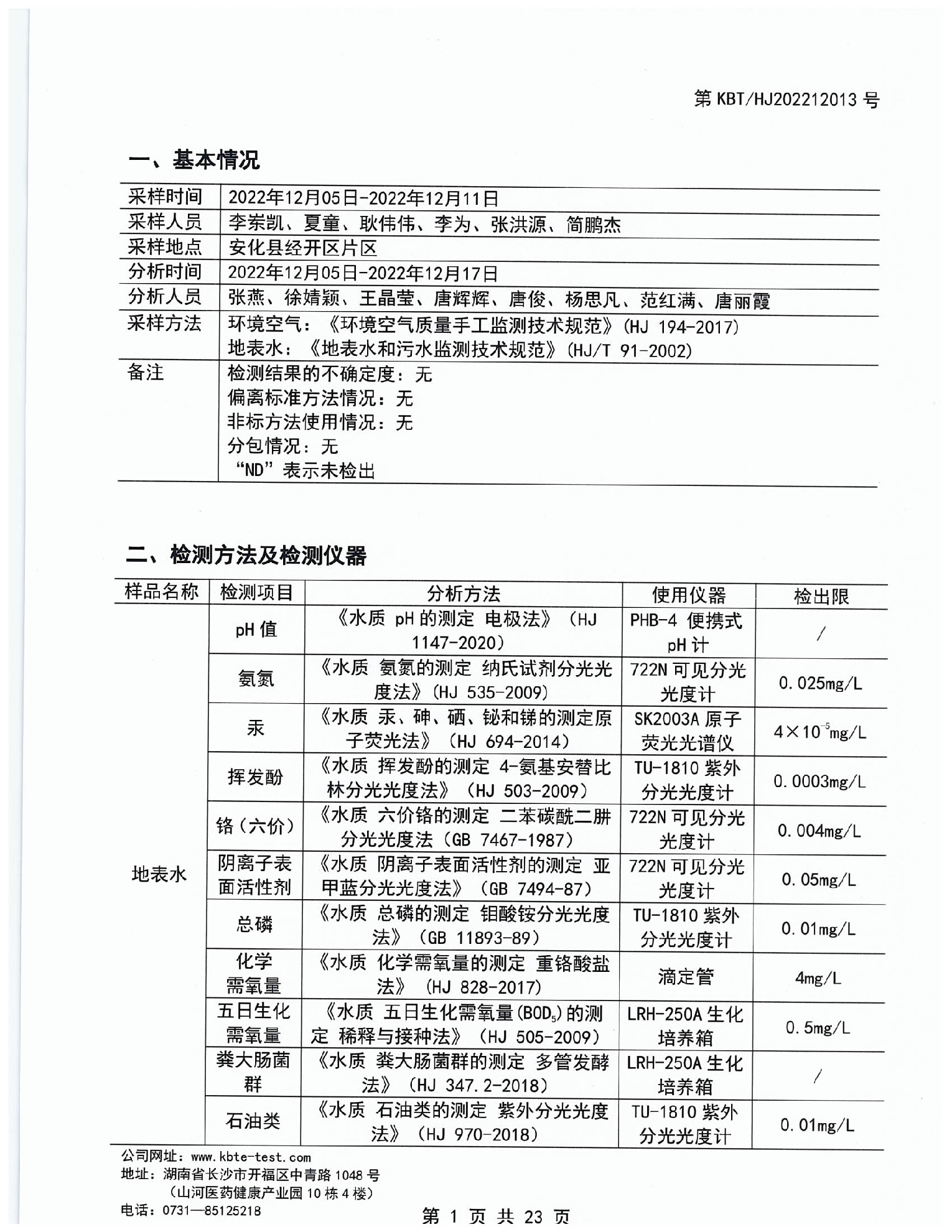 安化经开区2022年园区环境质量检测报告(第四季度)