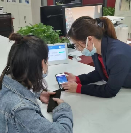 窗口工作人员向办事群众宣传推广“信易贷”平台