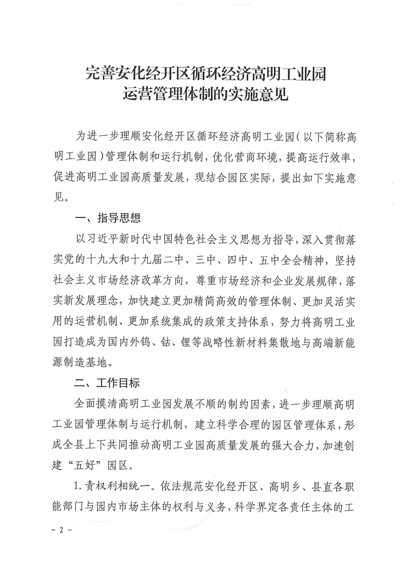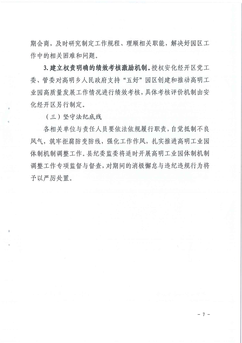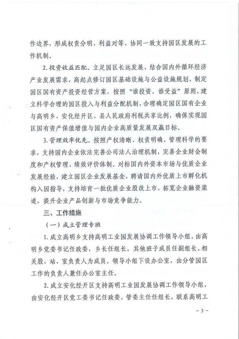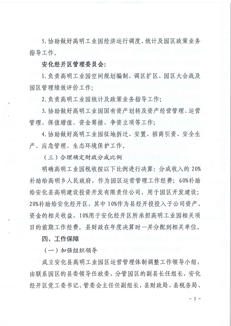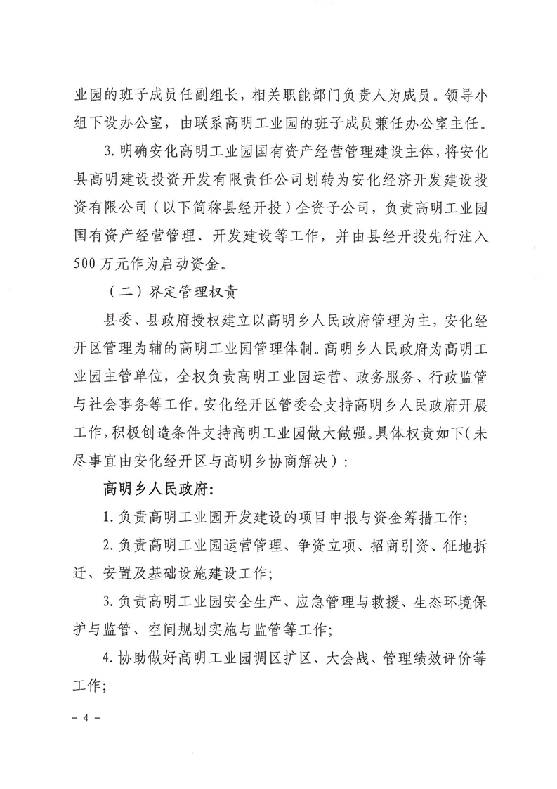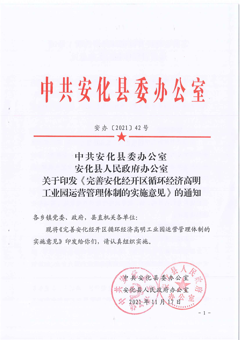 关于印发《完善安化经开区循环经济高明工业园运营管理体制的实施意见》的通知