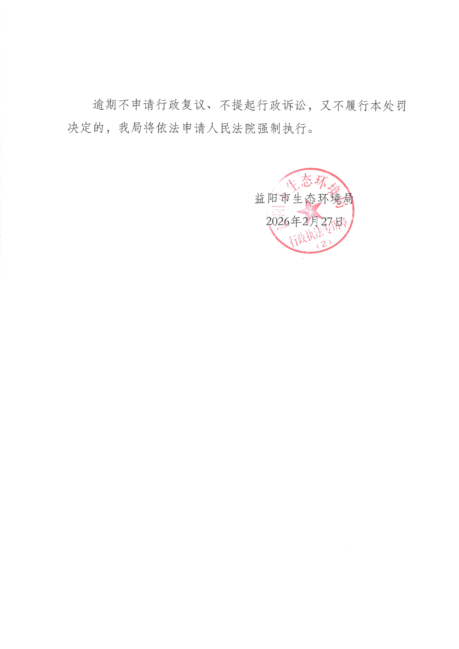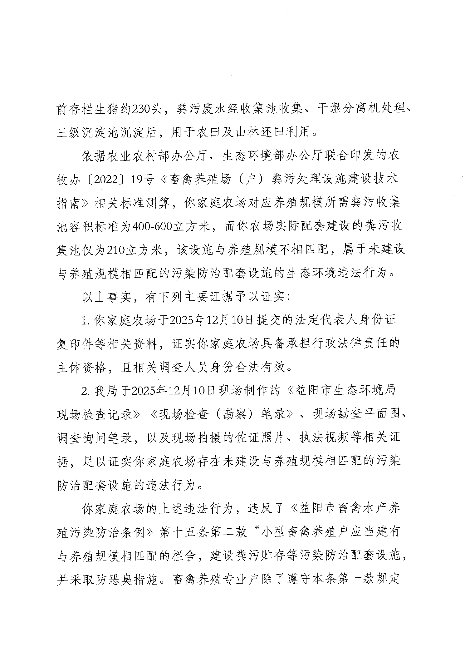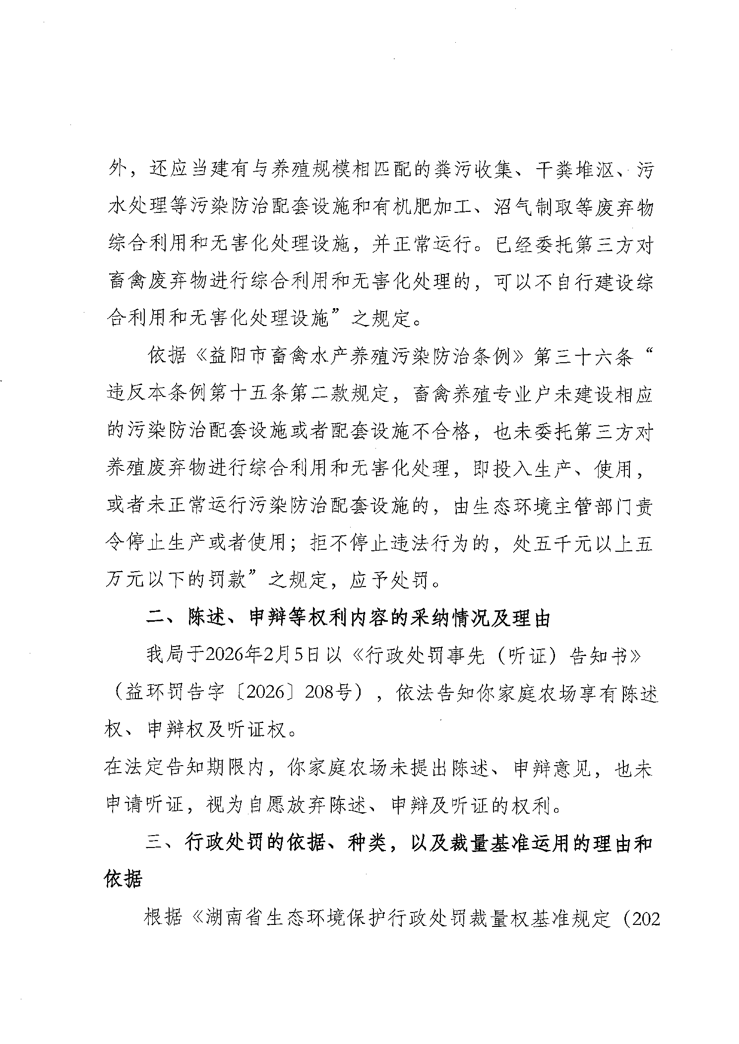 行政处罚决定书 益环罚决字〔2026〕208号 宇波生态家庭农场