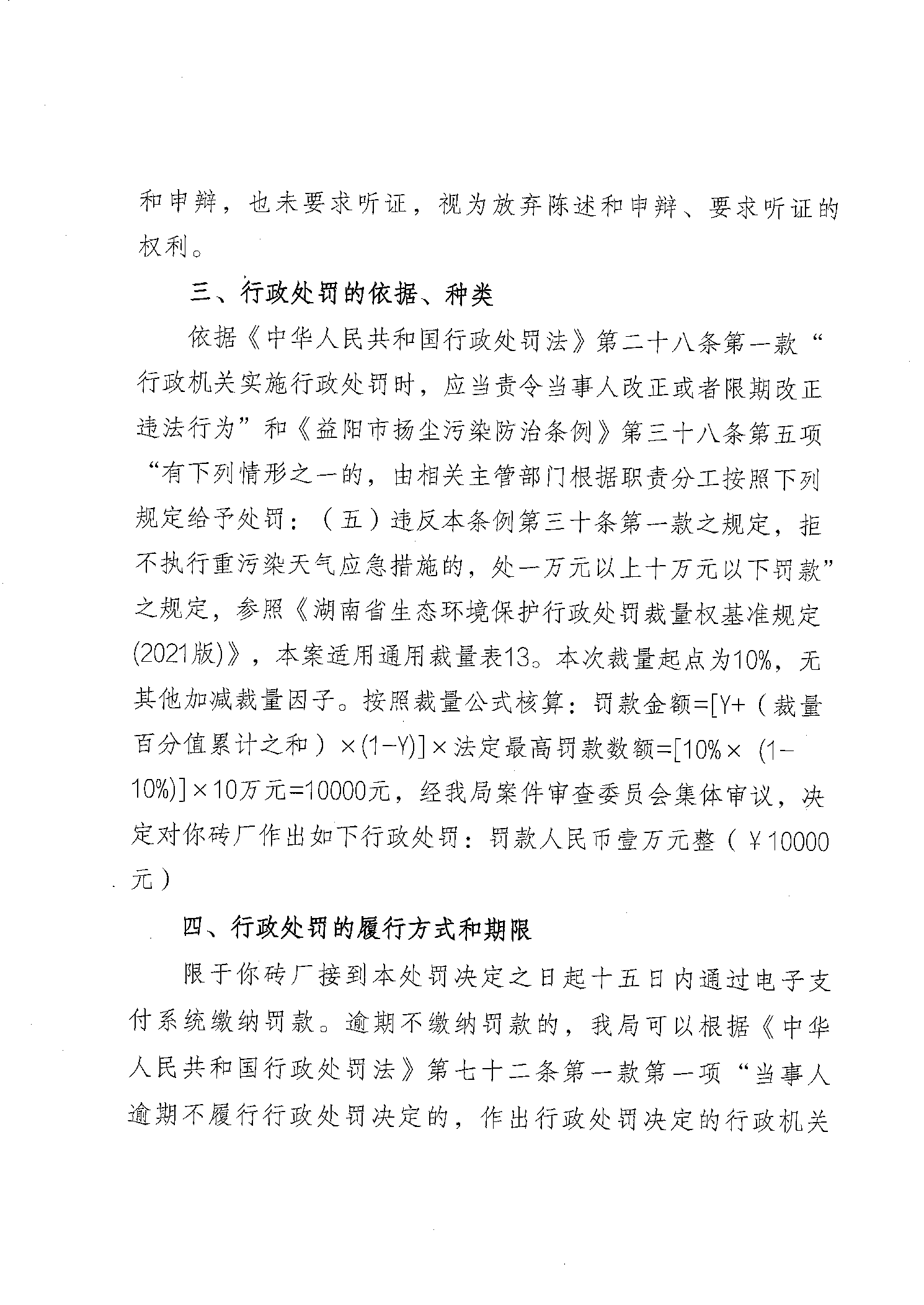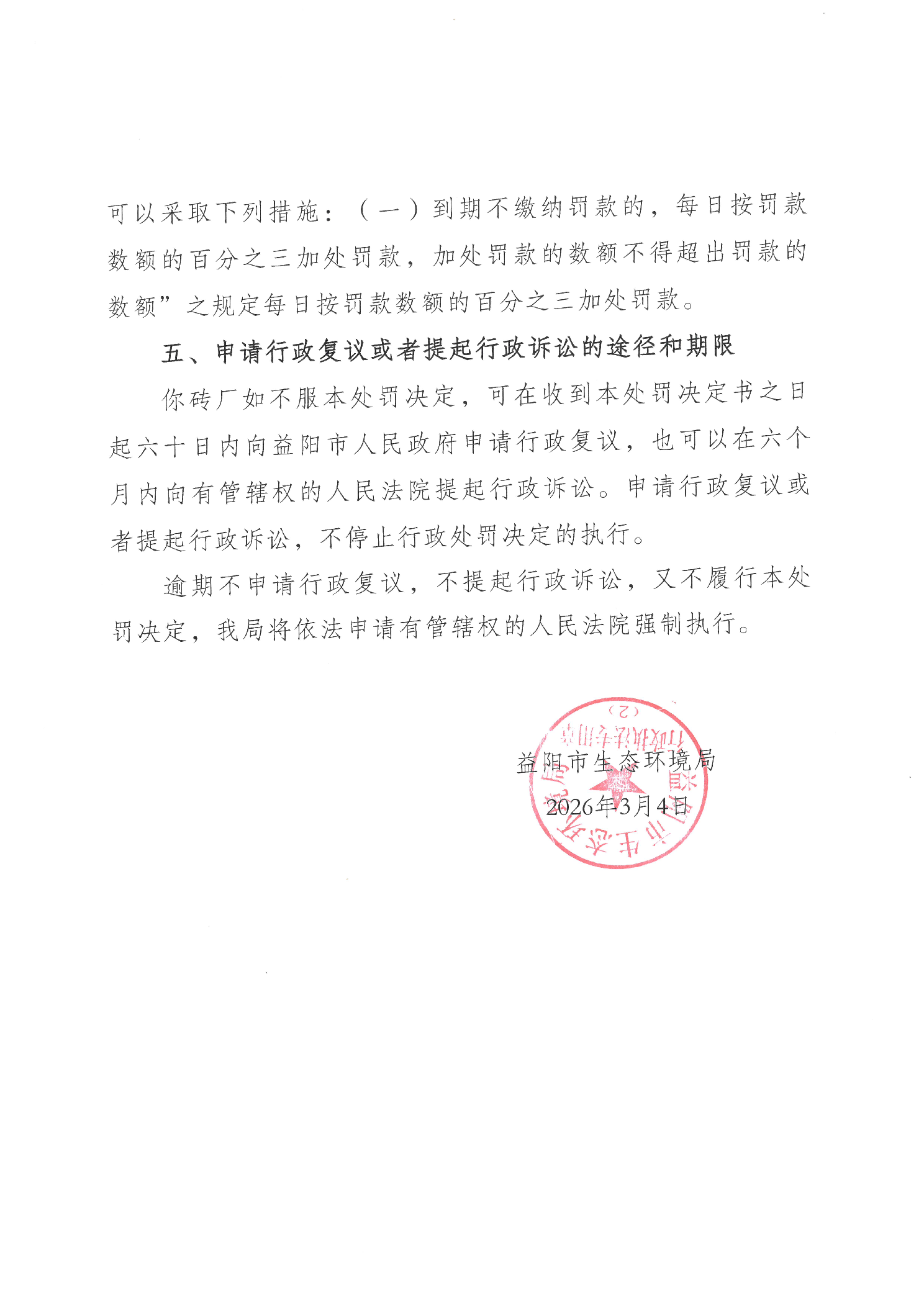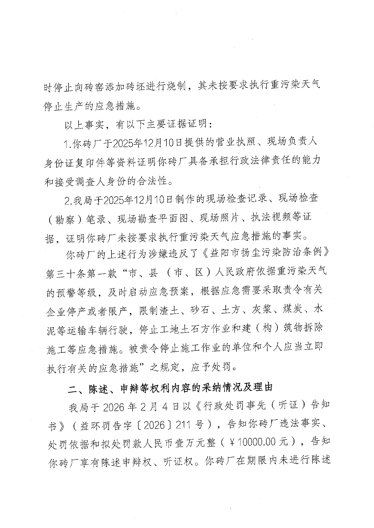 行政处罚决定书 益环罚决字〔2026〕211号 民富村月形砖厂