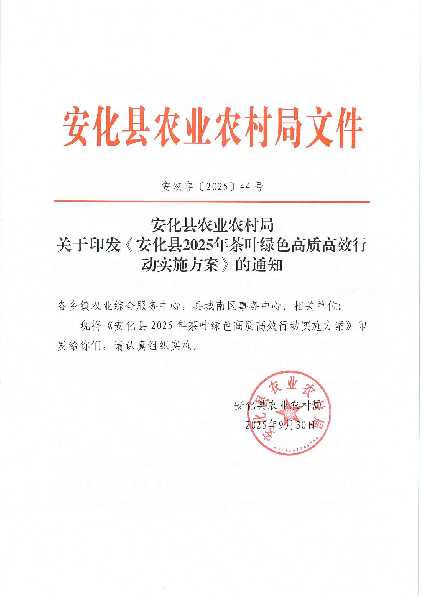 安化县农业农村局关于印发《安化县2025年茶叶绿色高质高效行动实施方案》的通知