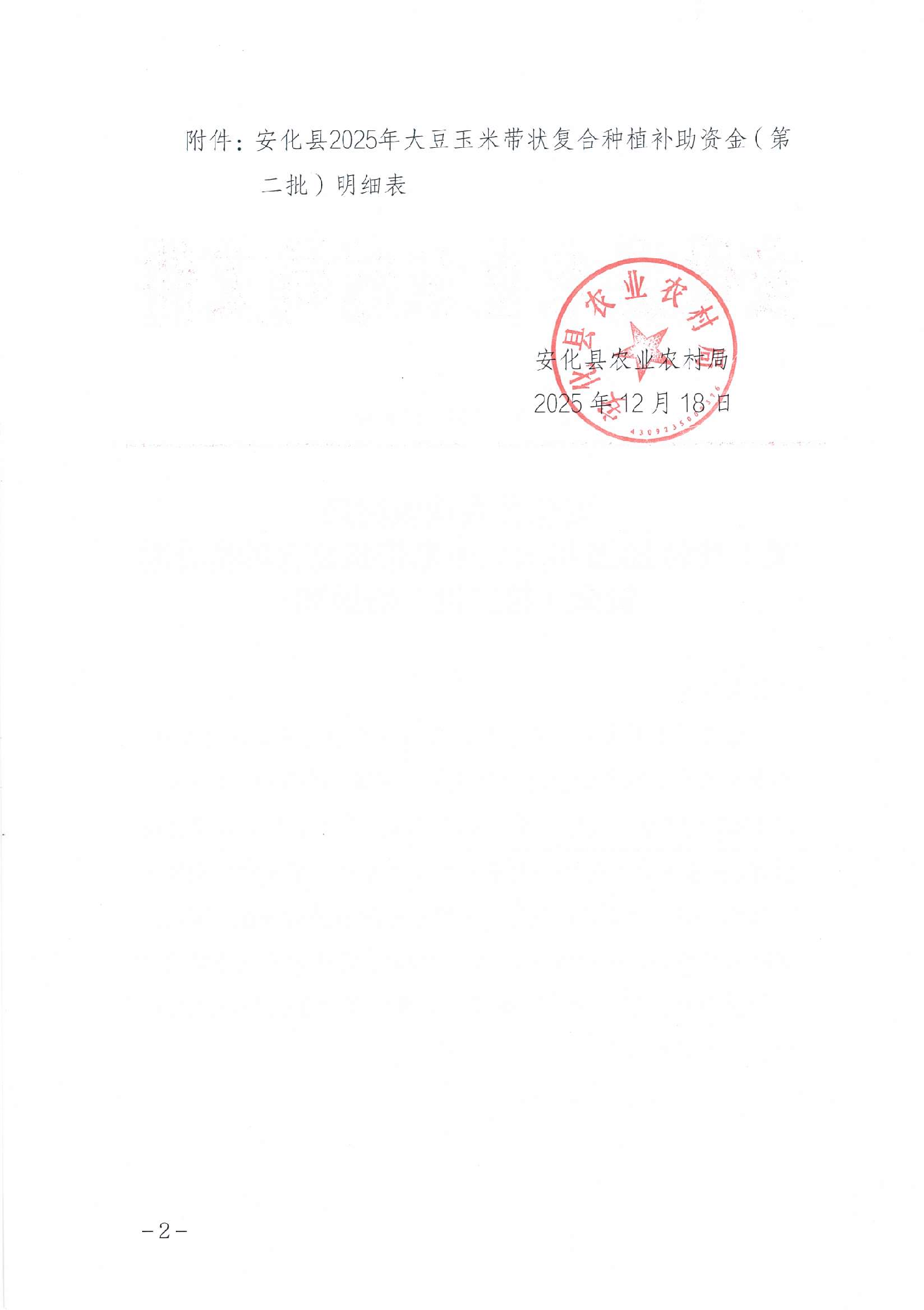 安化县农业农村局 关于拨付2025年大豆玉米带状复合种植补助 资金(第二批)的通知