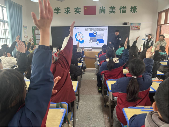 活动中,工作人员以卡通人物哆啦A梦调动同学们的积极性,一起化身侦探学会辨别一代、二代、三代毒品,以及免费皮肤、红包返利、解锁防沉迷等电信网络诈骗陷阱,并学习如何提高自我保护能力和运用《中华人民共和国未成年人保护法》。此外,还设置了有奖竞答环节,工作人员以全套漫画民法典作为奖品,让民法典通过漫画形式入脑入心。
