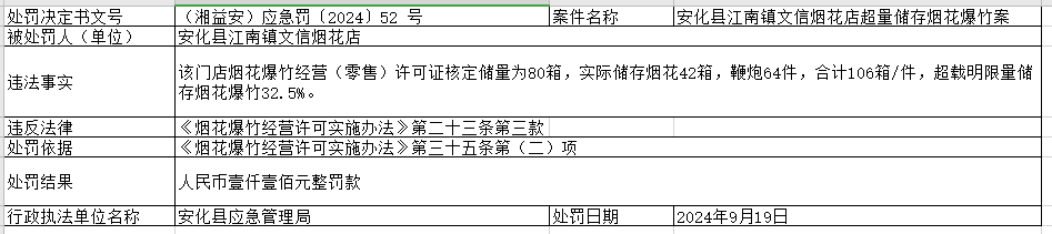 安化县江南镇文信烟花店超量储存烟花爆竹案