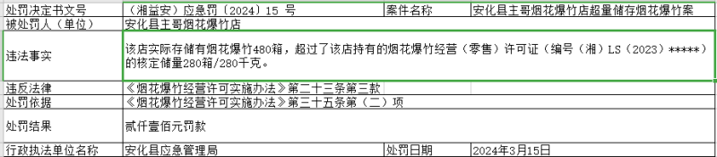 安化县主哥烟花爆竹店超量储存烟花爆竹案