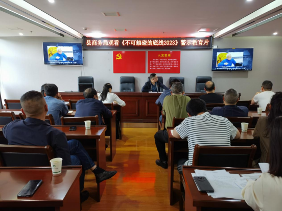4月25日,县商务局组织全局干职工、下辖各二级机构和各企业负责人、及各基层党支部书记等40余人开展节前党纪和安全警示教育。