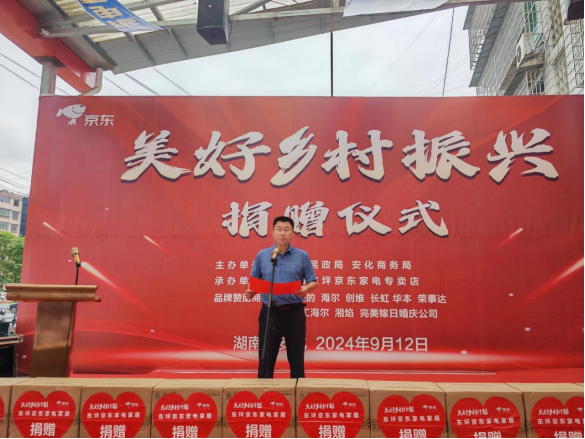 9月12日,安化县举办了“美好乡村计划”惠民活动捐赠仪式,活动由县民政局、县商务局主办,由东坪京东家电专卖店承办,县委常委、副县长郭环球出席了捐赠仪式,现场共计200余人参与本次活动。