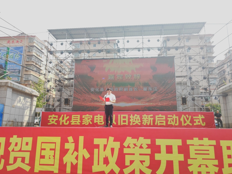 为认真落实中央、省、市关于鼓励引导设备更新和消费品以旧换新的工作部署,有效激发家电市场活力,9月26日,安化县商务局、东坪镇、城南事务中心联合京东家电家居及其它入围家电以旧换新的25家销售门店组织开展2024年家电以旧换新活动启动仪式,县人民政府副县长瞿东江参加活动并致辞。