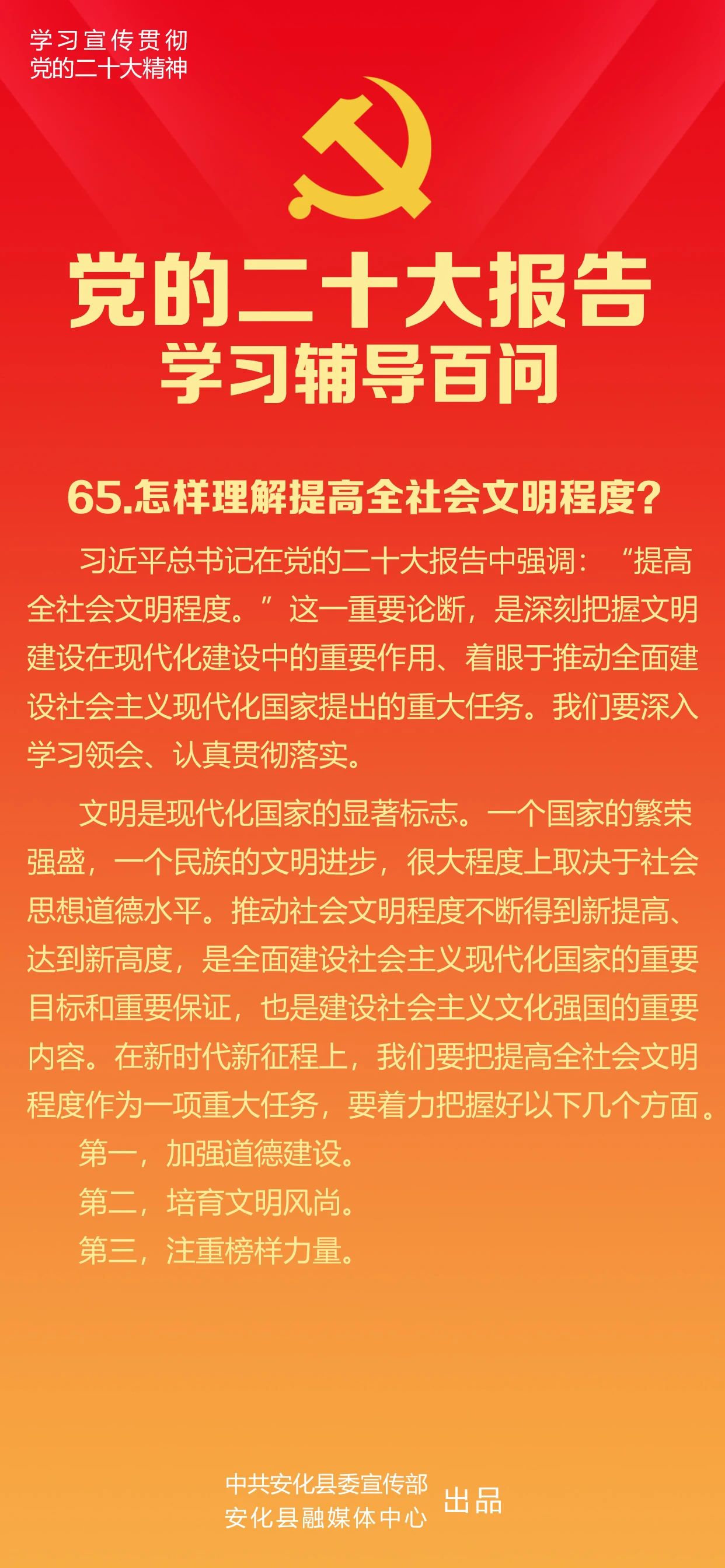 习近平总书记在党的二十大报告中强调:“提高全社会文明程度。”这一重要论断,是深刻把握文明建设在现代化建设中的重要作用、着眼于推动全面建设社会主义现代化国家提出的重大任务。我们要深入学习领会、认真贯彻落实。