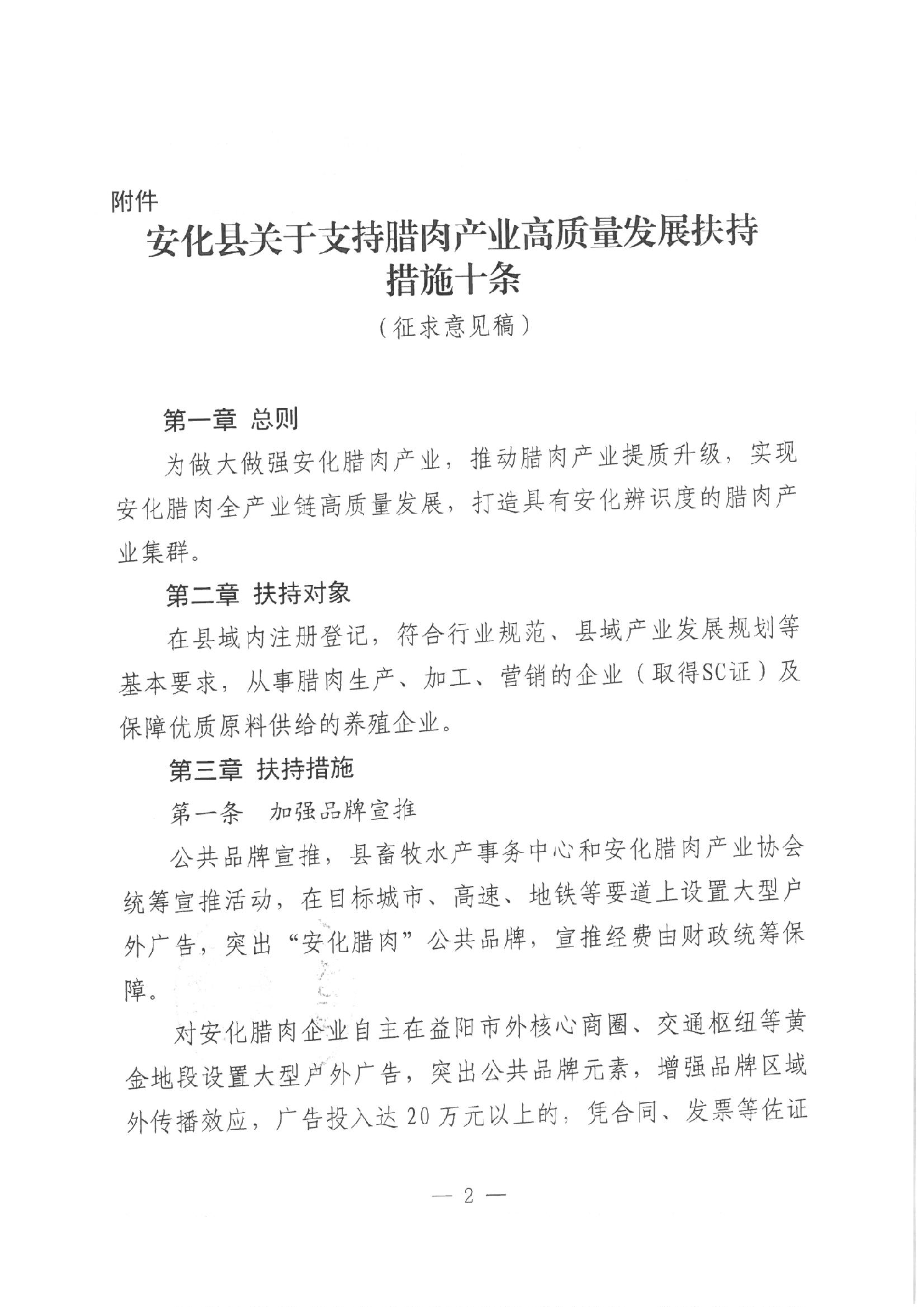 关于《安化县关于支持腊肉产业高质量发展扶持措施十条(征求意见稿)》面向社会公众征求意见建议的公告