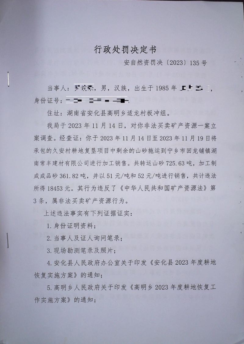 行政处罚决定书 安自然资罚决〔2023〕135号