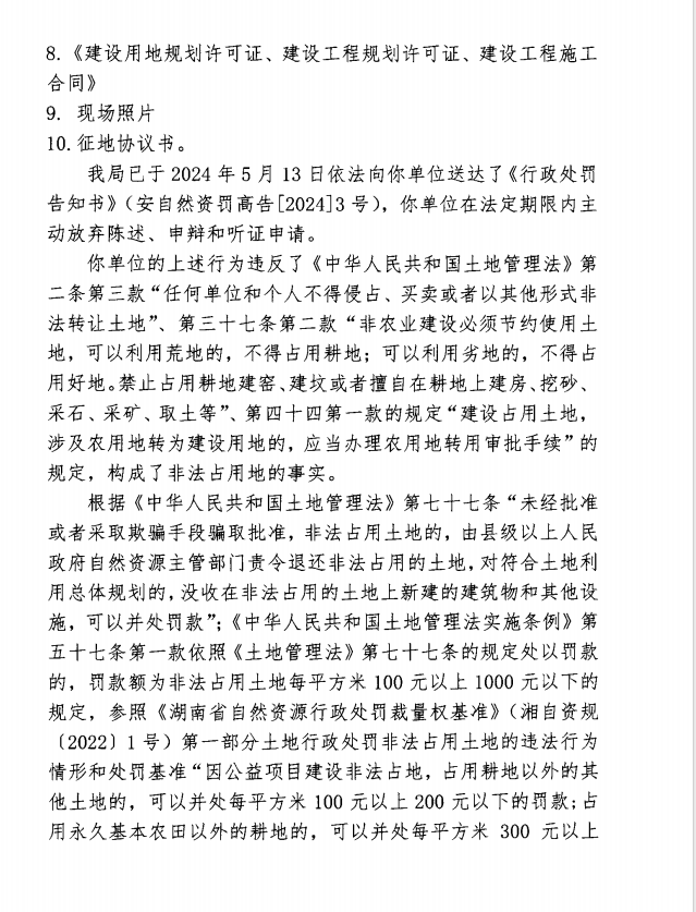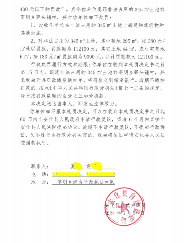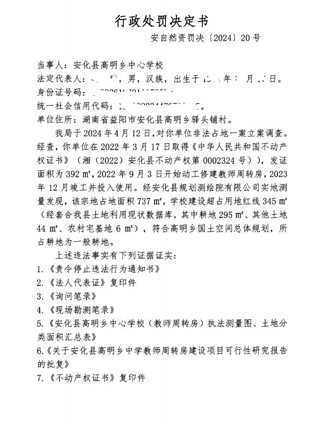 行政处罚决定书 安自然资罚决〔2024〕20号