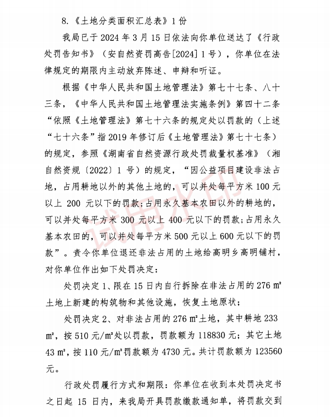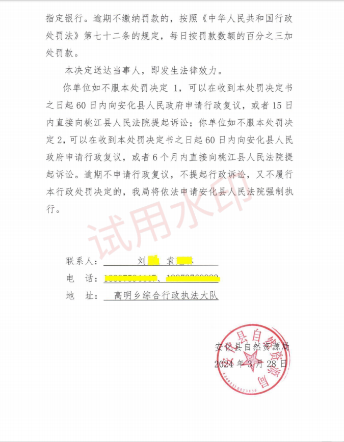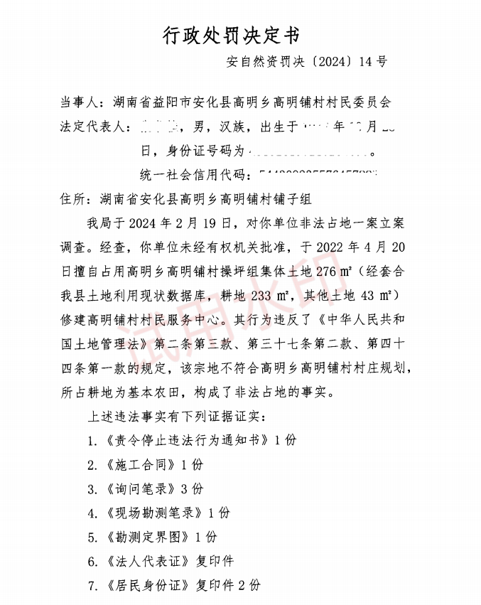 行政处罚决定书 安自然资罚决〔2024〕14号