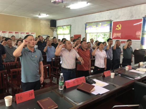 现场交流会结束后,大家返回政府,在大会议室参加第二阶段的2022年上半年党建工作点评暨当前重点工作推进会。会议在大家重温入党誓词中正式开始,对各基层党组织上半年党建工作开展情况进行了逐一点评,对上半年工作中涌现的先进基层党组织和个人进行表彰。随后,黑泥田村就党员干部联系群众“五个到户”工作进行经验交流与心得分享。