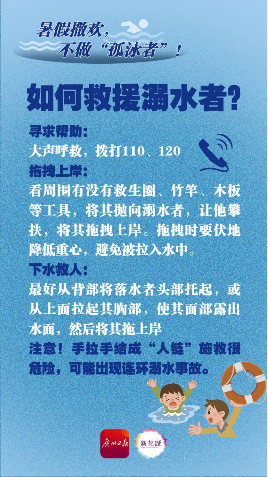 纠错:溺水者慌乱中求生时,力量惊人。因缺乏救援经验,热心群众贸然下水救援反被拖入水中的惨剧时有发生。非受过专业训练或者经验丰富者,切忌下水救人,应尽量使用长杆、漂浮物等工具实施救援。
