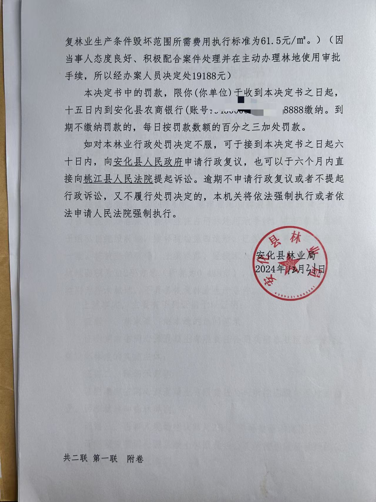 林业行政处罚决定书(安林罚决字[2024]第21002号)
