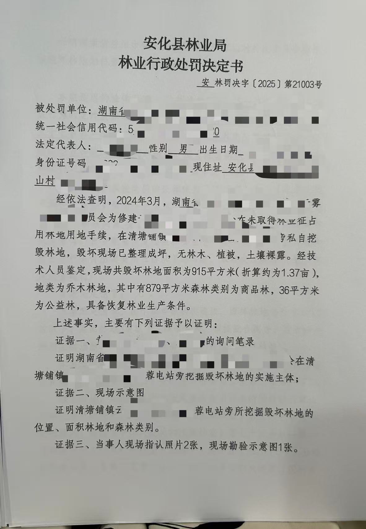 林业行政处罚决定书(安林罚决字[2025]第21003号)