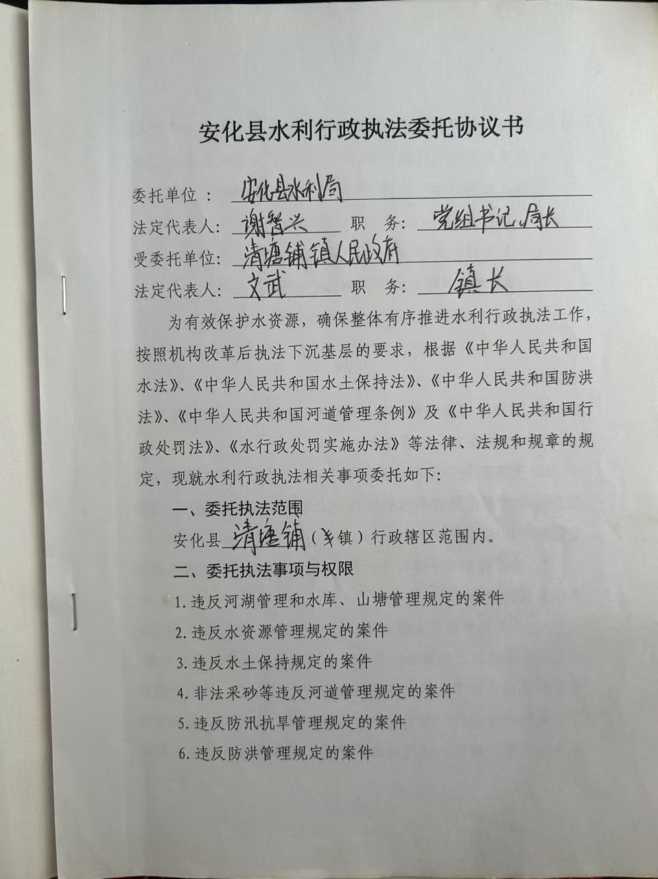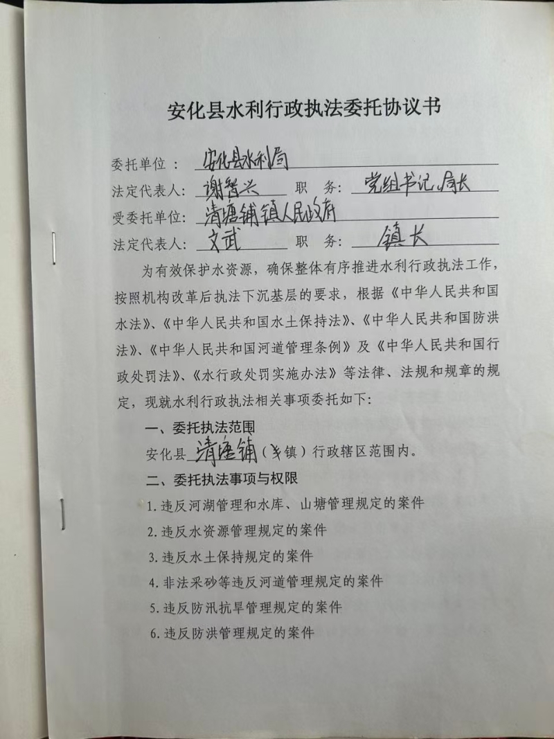 安化县水利行政执法委托协议书