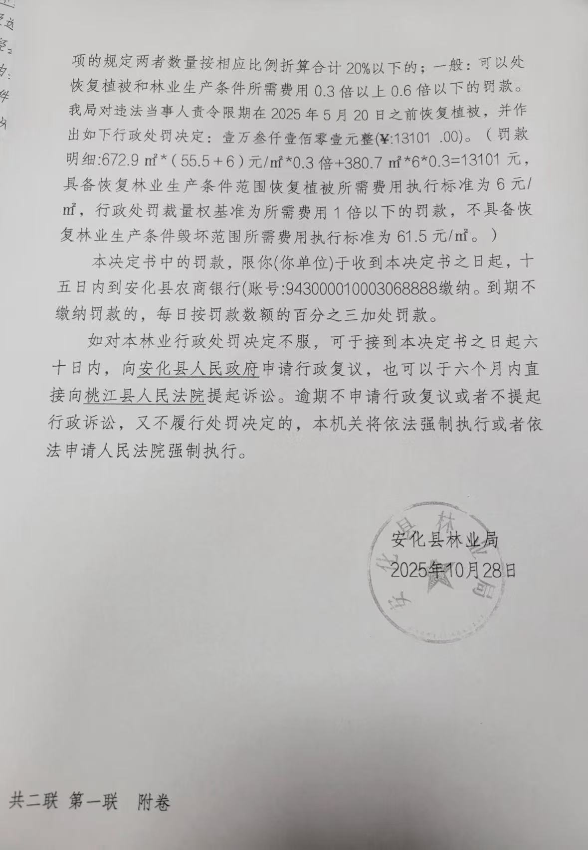 林业行政处罚决定书(安林罚决字[2025]第21009号)