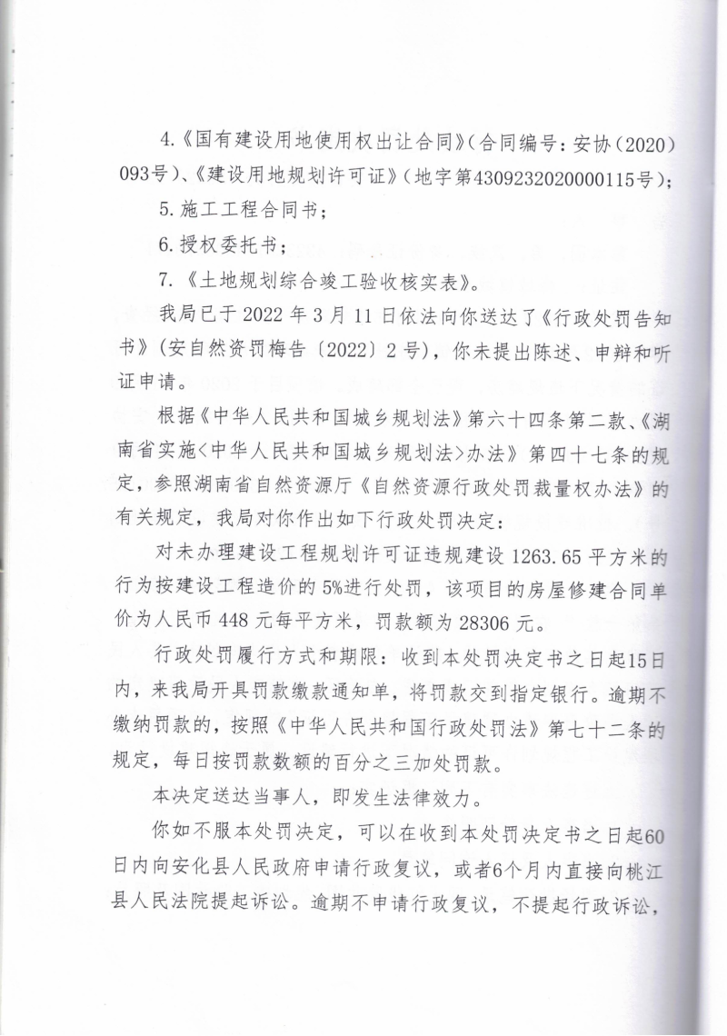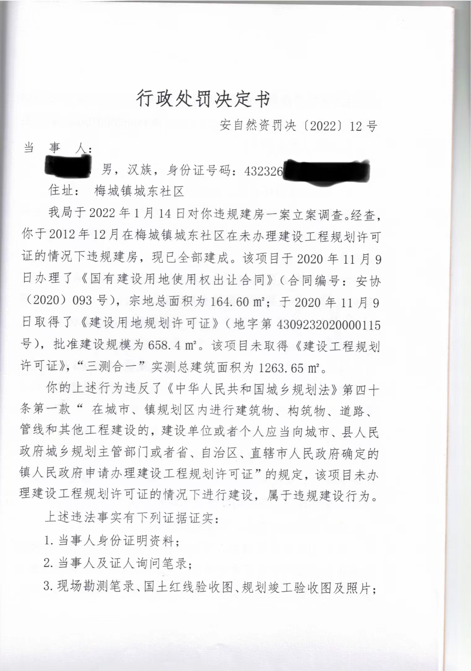 行政处罚决定书(梅城镇城东社区违规建设)