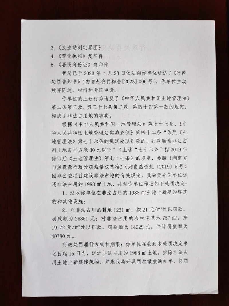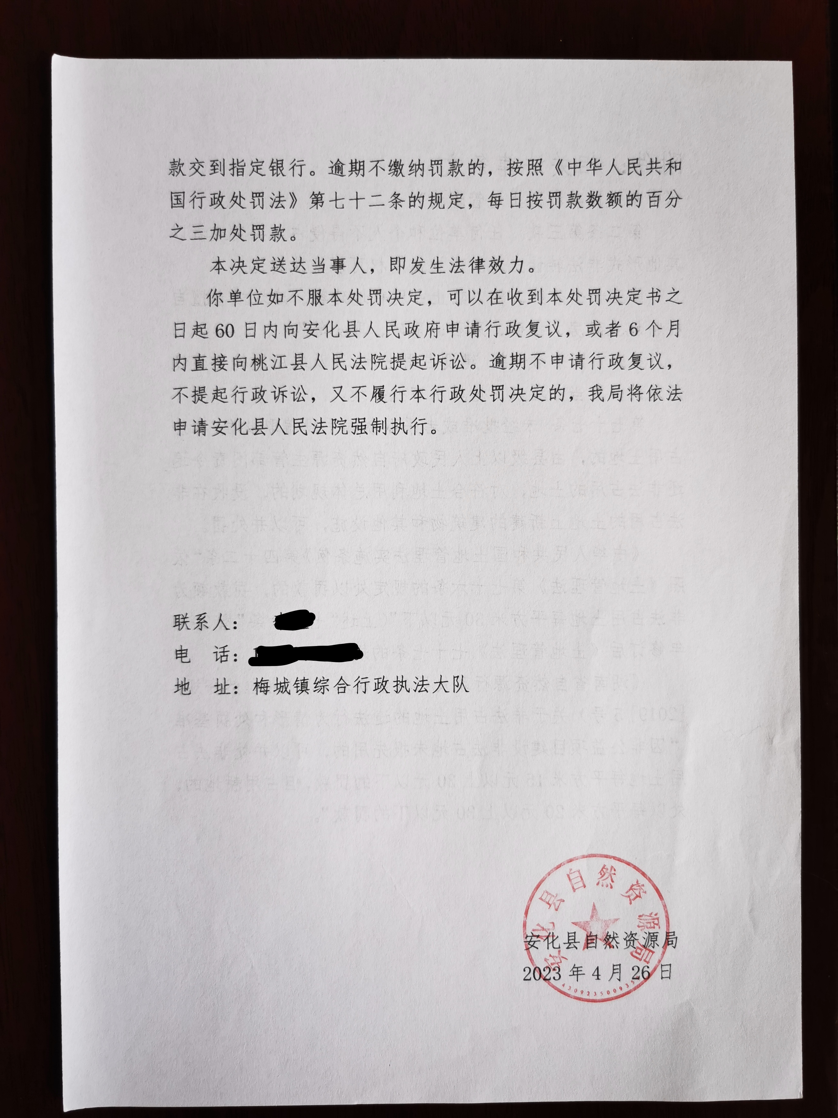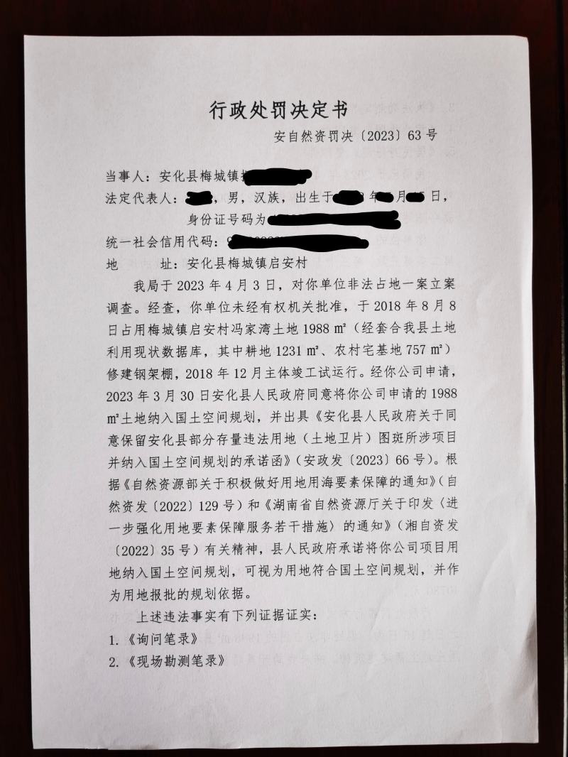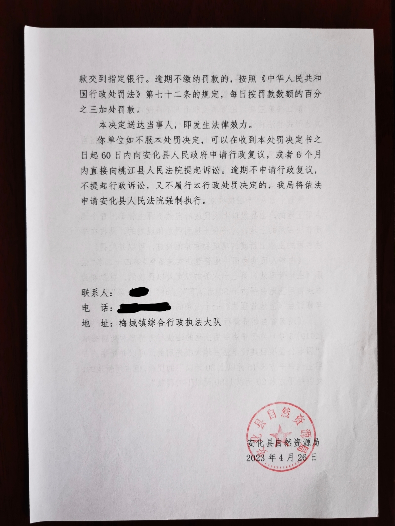 行政处罚决定书(梅城镇启安社区冯家湾)
