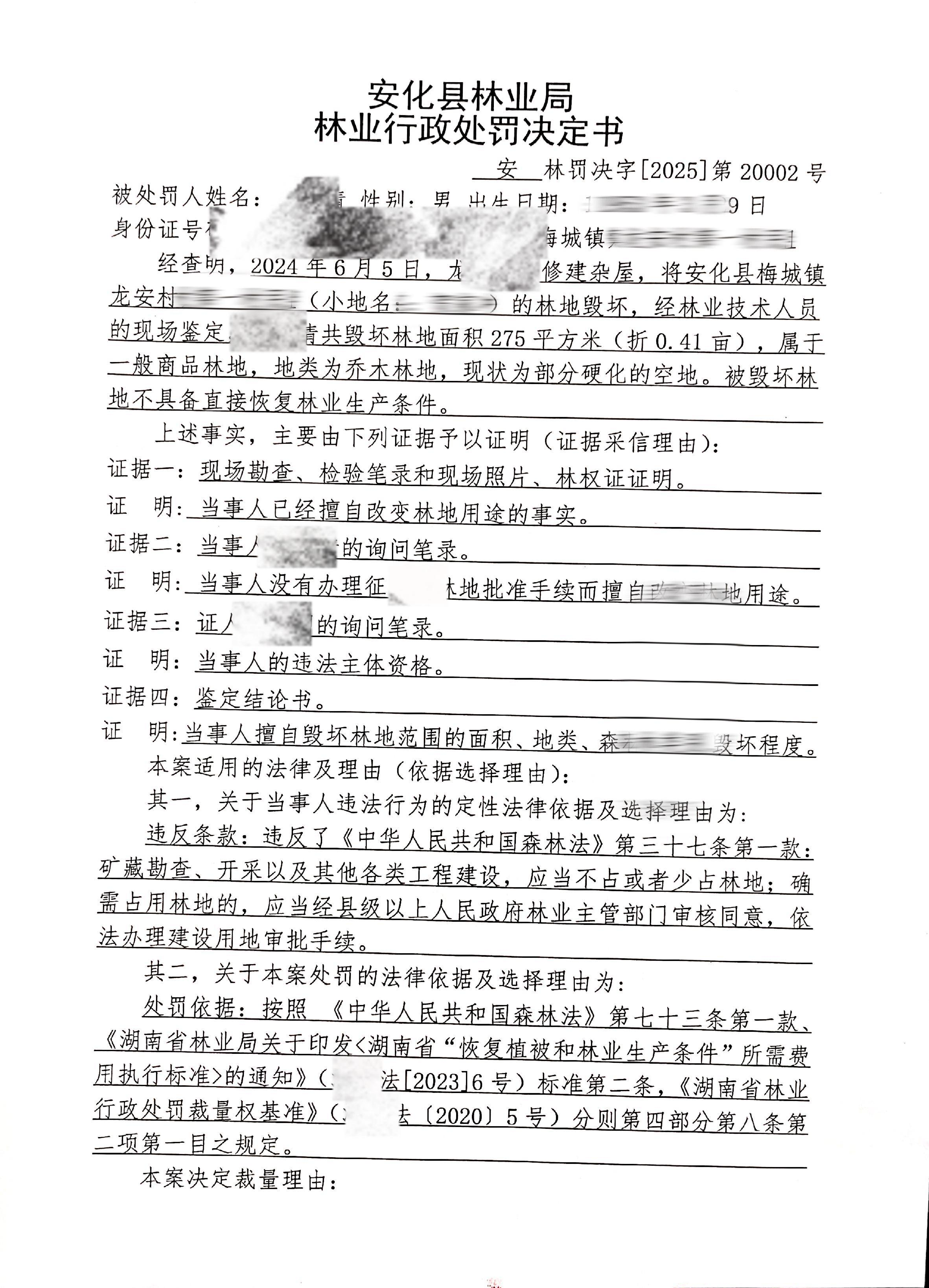 林业行政处罚决定书(梅城镇龙安村第一村民组)