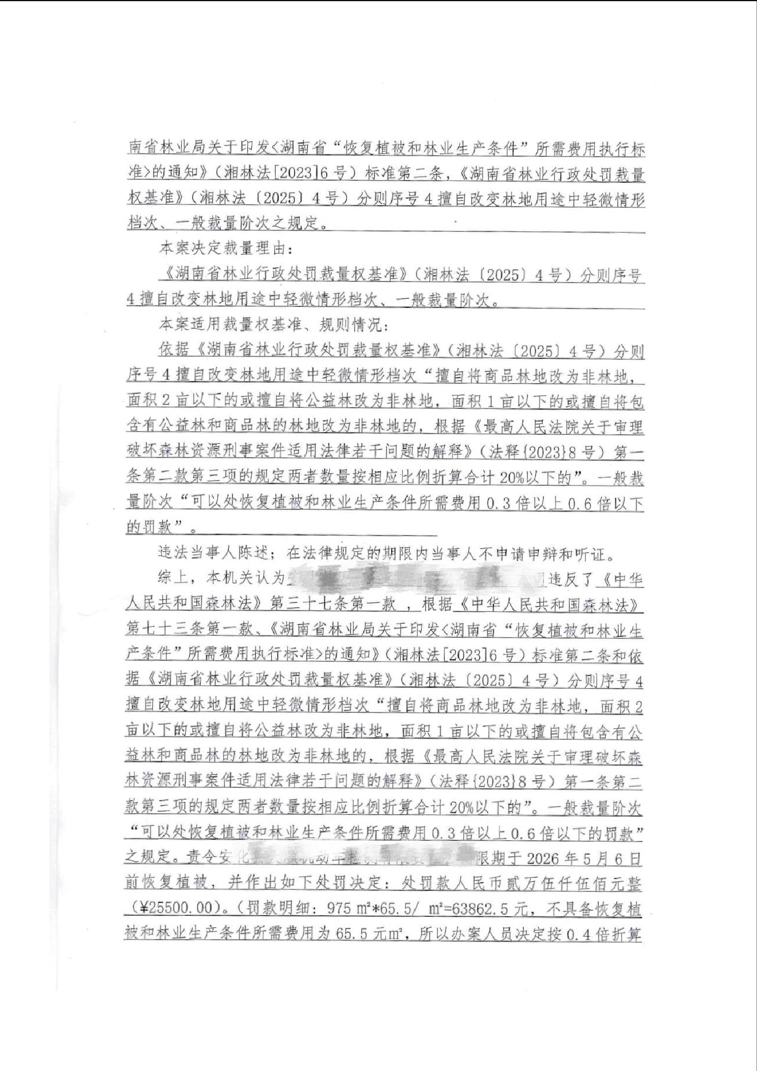 林业行政处罚决定书(梅城镇三里村)