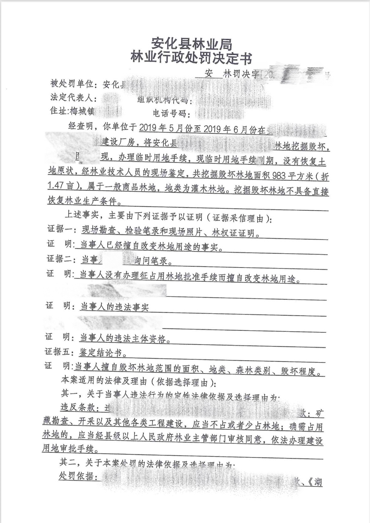 林业行政处罚决定书