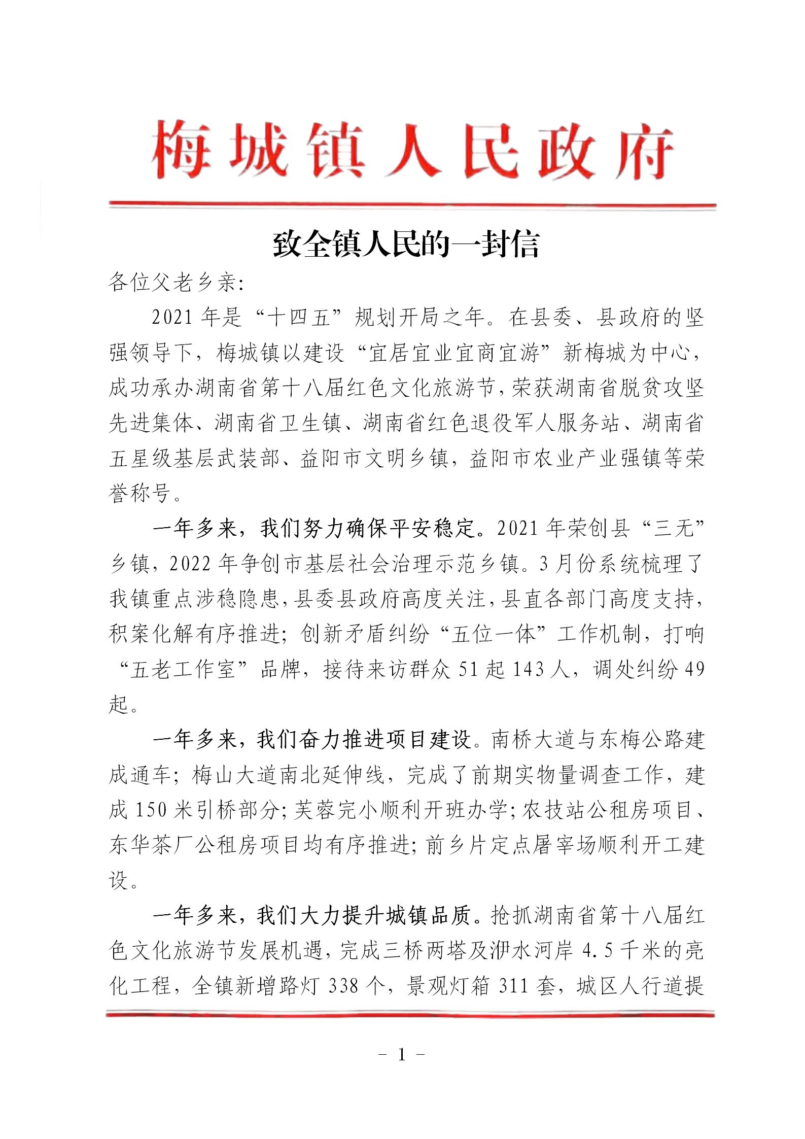 致全镇人民的一封信