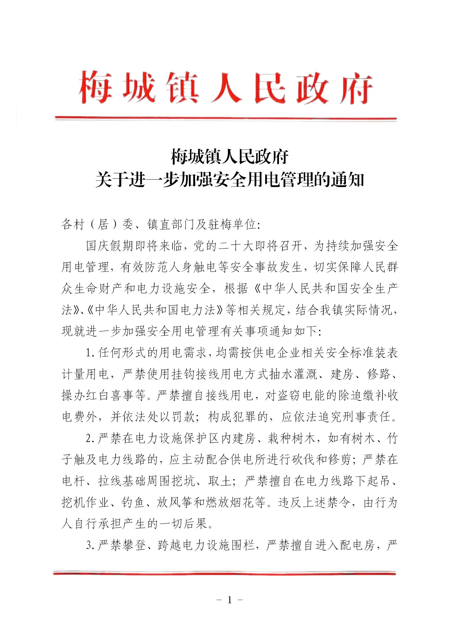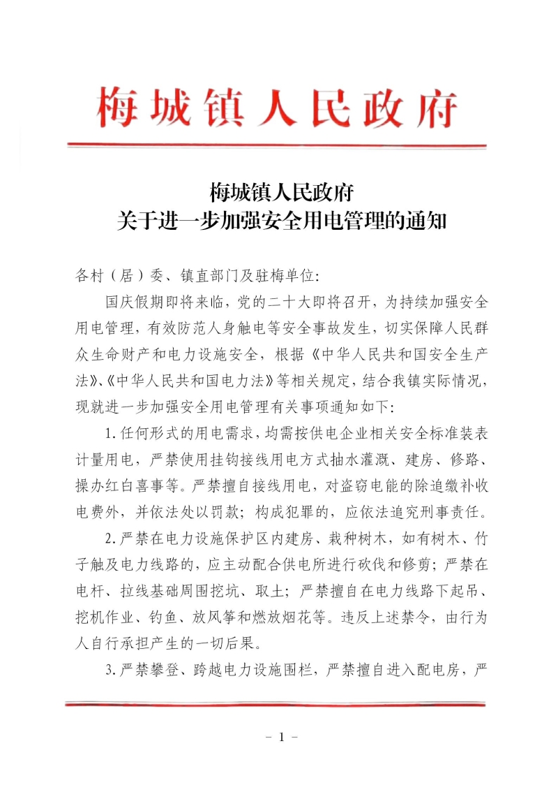 关于进一步加强安全用电管理的通知