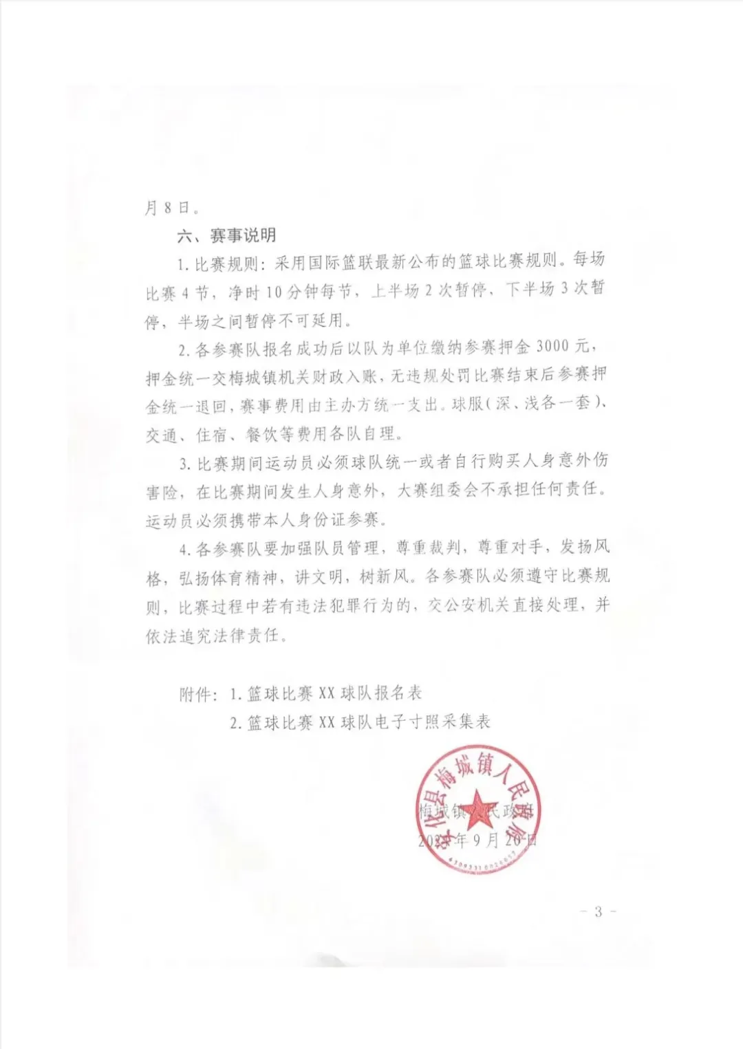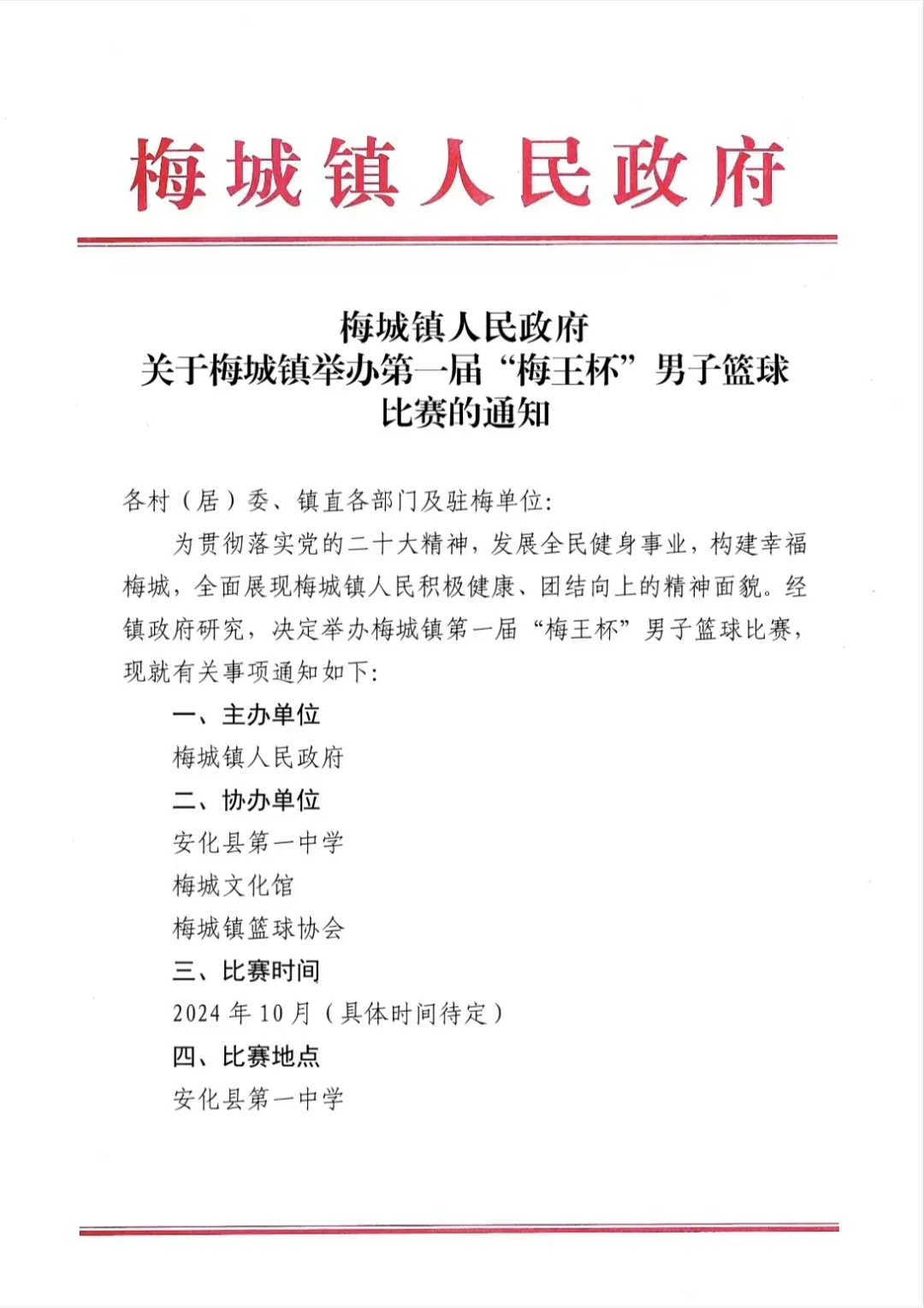 关于梅城镇举办第一届“梅王杯”男子篮球比赛的通知