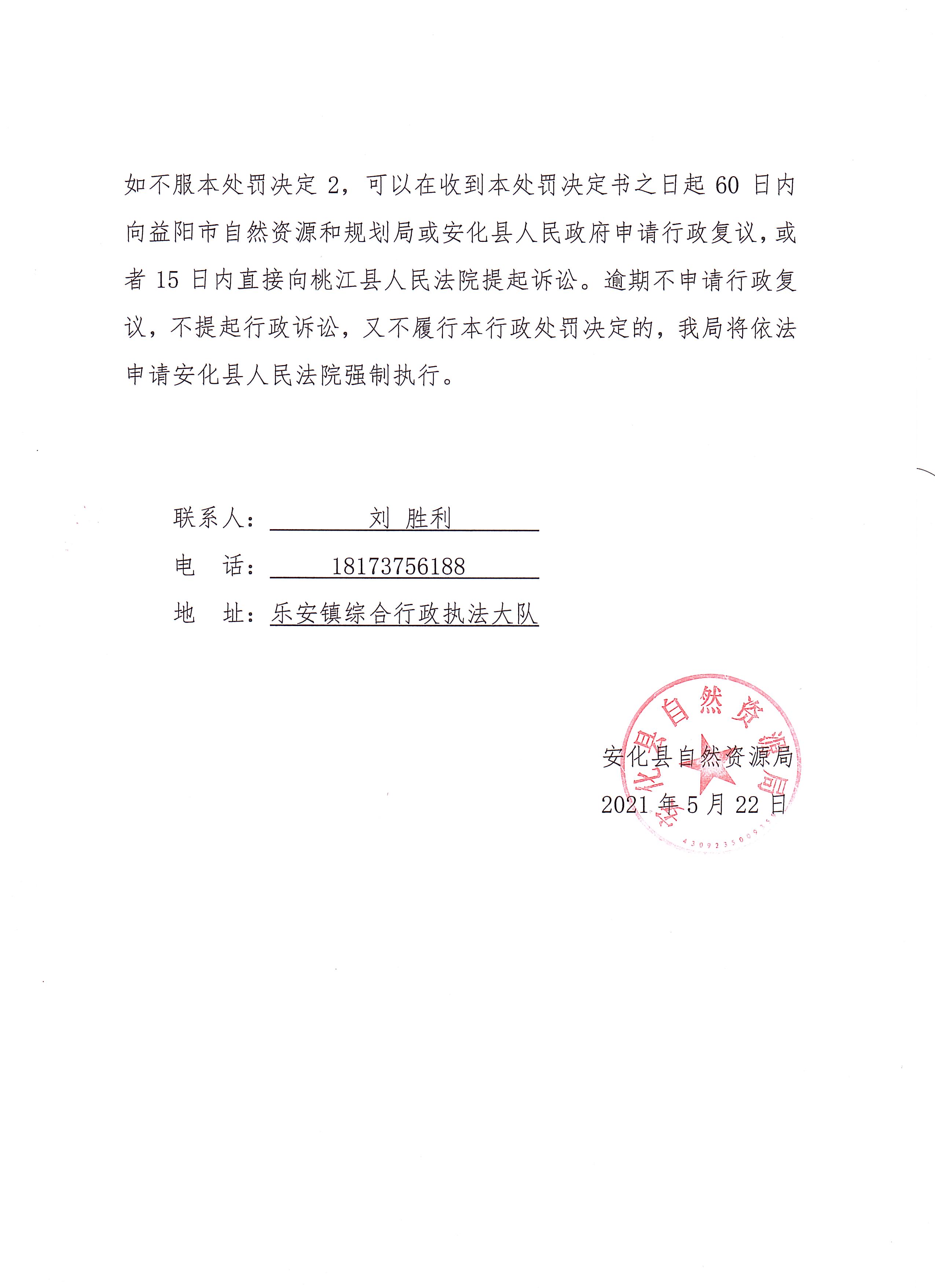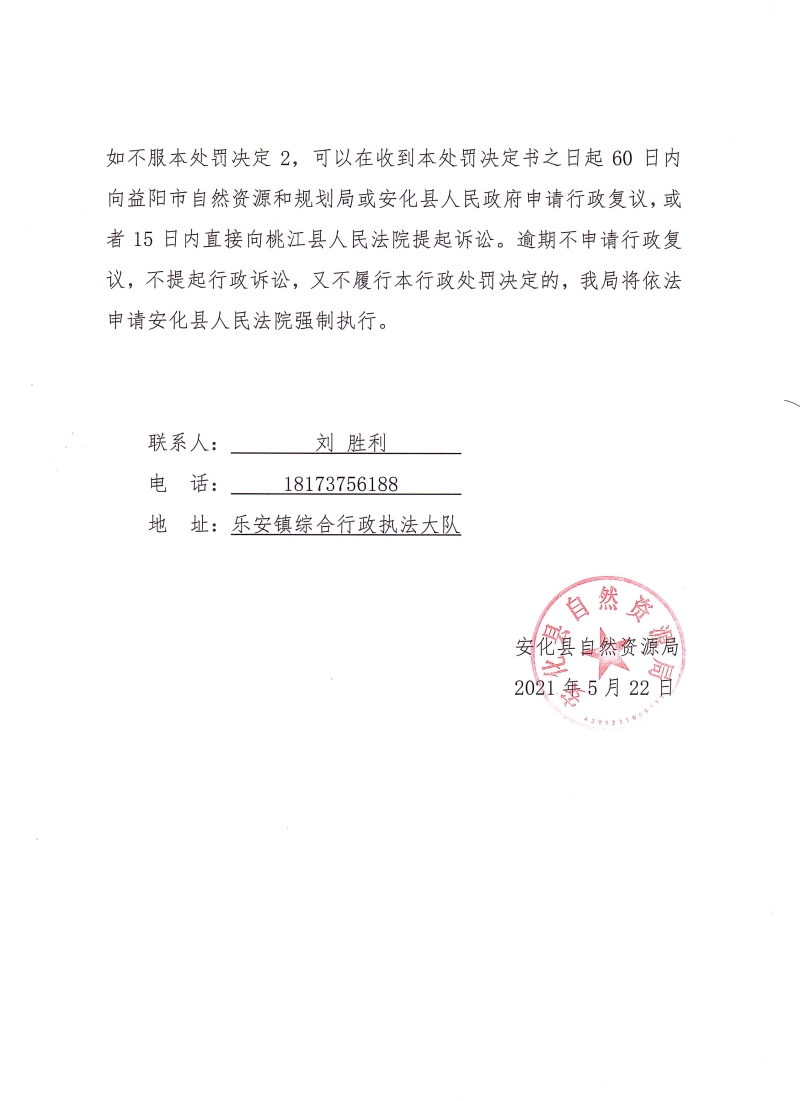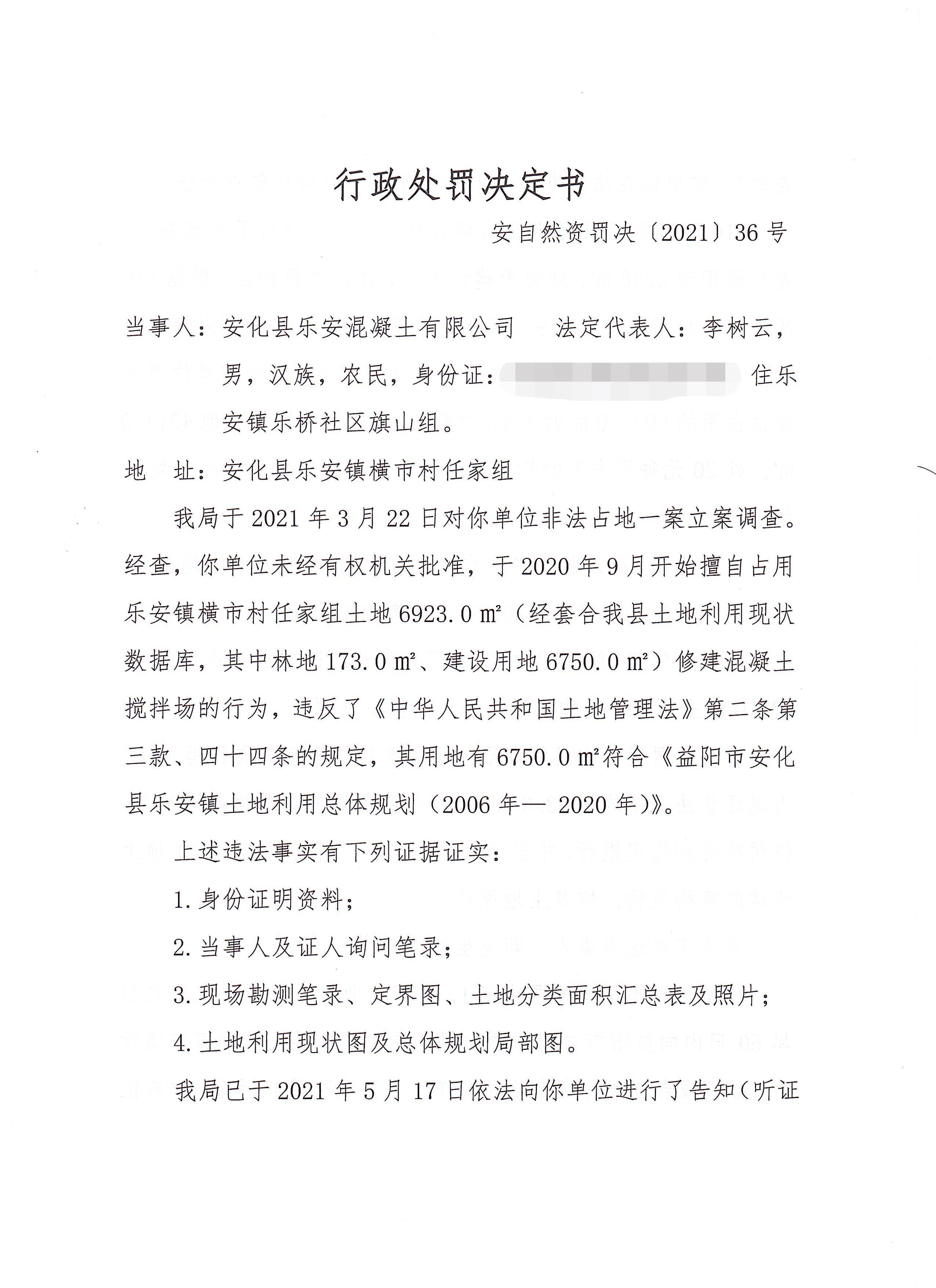 安化县乐安混凝土有限公司-行政处罚决定书-安自然资罚决〔2021〕36号
