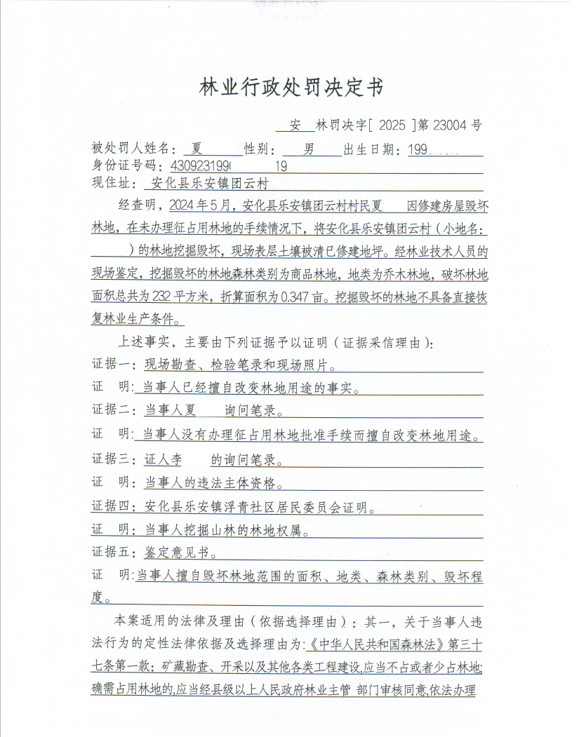 林业行政处罚决定书 安林罚决字[2025]第 23004号