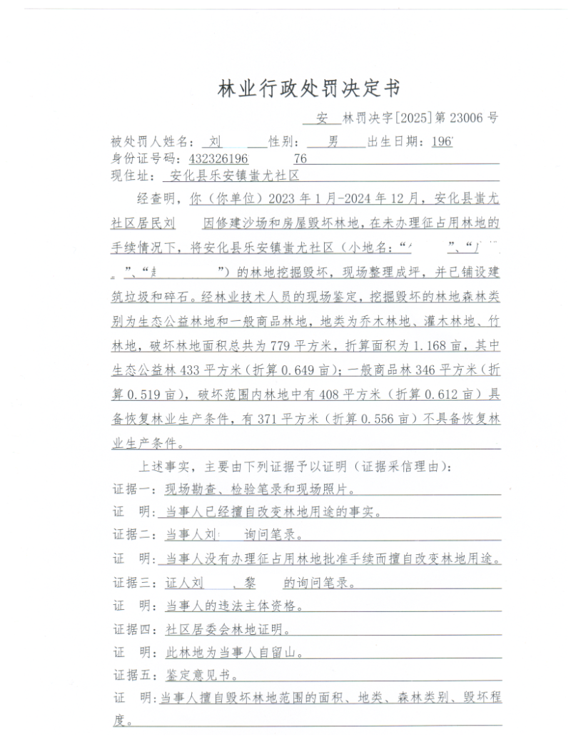 林业行政处罚决定书安林罚决字[2025]第23006号