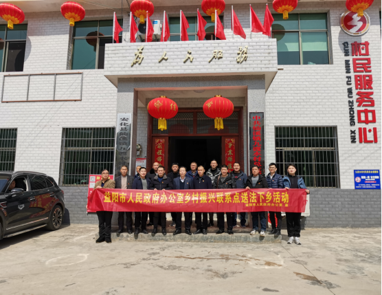 为进一步提高农民群众的法律意识,加快法治乡村建设,3月2日,市人民政府办来乡村振兴联系点九渡水村开展送法下乡活动,镇党委副书记、镇长田效军参加。