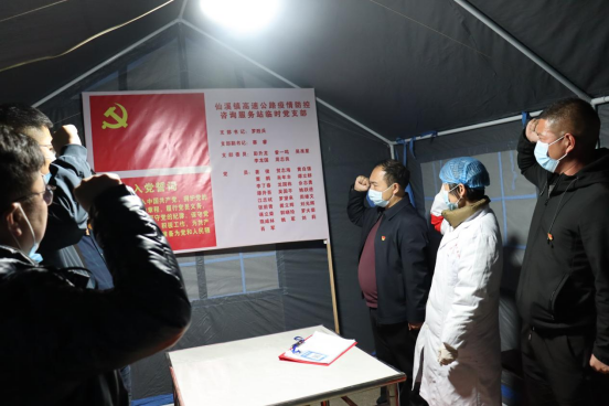 高速公路作为第一关口,必须牢牢守住,绝不放松。仙溪镇党委政府当机立断,在仙溪高速出口成立疫情防控咨询服务站临时党支部,党政领导亲自带队,政府机关、交管、卫健、公安等部门人员联合执勤,对过往车辆逐一排查,详细登记人员信息,查验健康码、行程码、核酸检测报告并测量体温,严守疫情防控第一道防线。