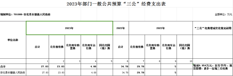 长塘镇人民政府2023年部门一般公共预算“三公”经费支出表