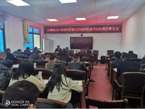 ▲图为该镇2021年耕地非粮化和耕地抛荒情况排查部署会议现场