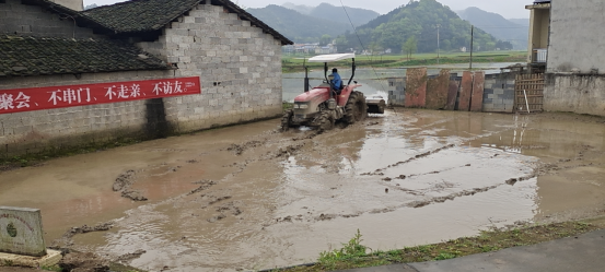 ▲图为长塘镇合欣村一处农田中耕田机耕作现场