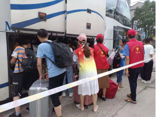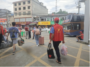 社工和志愿者为同学们拉开安全通道,组织过往车辆避让通行,护送同学们安全上车,中考为期三天,沉甸甸的行李箱在社工和志愿者手中有序的放进车厢,即使挥汗如雨,浸湿了衣服,社工和志愿者们依然用坚持和行动为同学们助力,其中一名阿姨志愿者面带笑容的跟社工说:“你们应该多组织这样的活动,这种有意义的社工活动我们都会积极参与,我又不打麻将在家也无事可做,做点有意义的事情挺好的”。