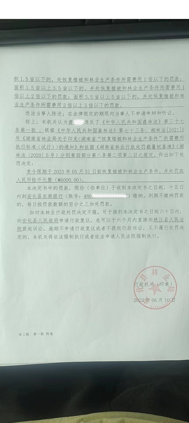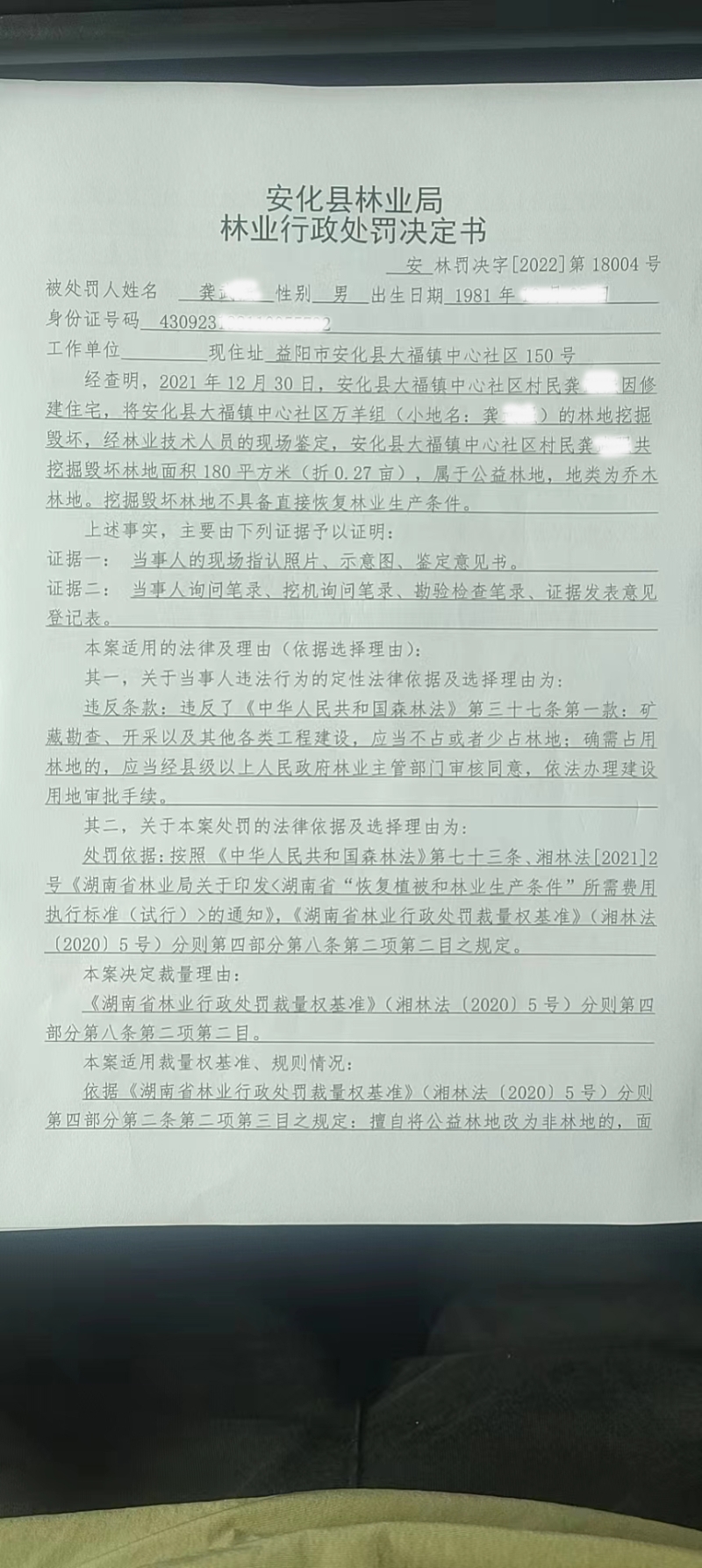 安林罚决字【2022】第18004号