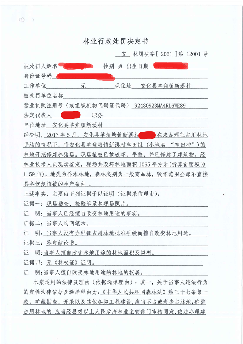 林业行政处罚决定书(安林罚决字[2021]第12001号)