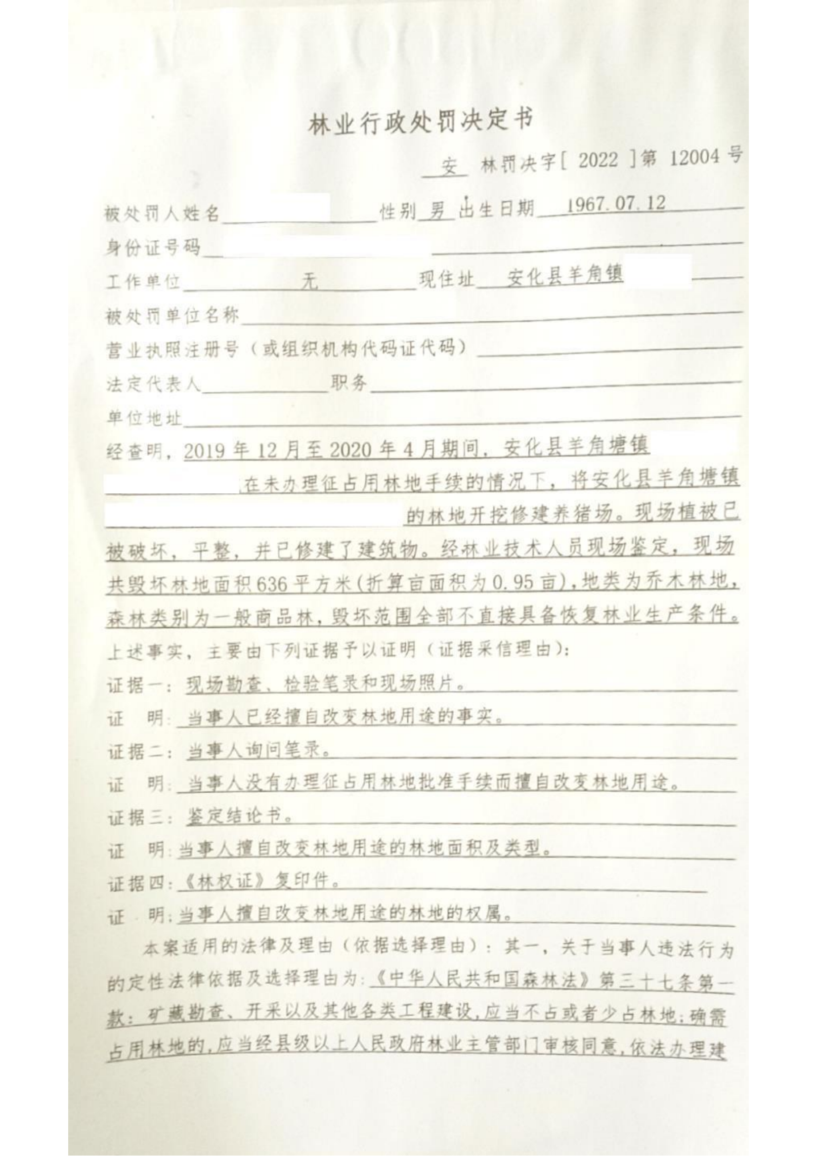林业行政处罚决定书(安林罚决字[2022]第12004号)