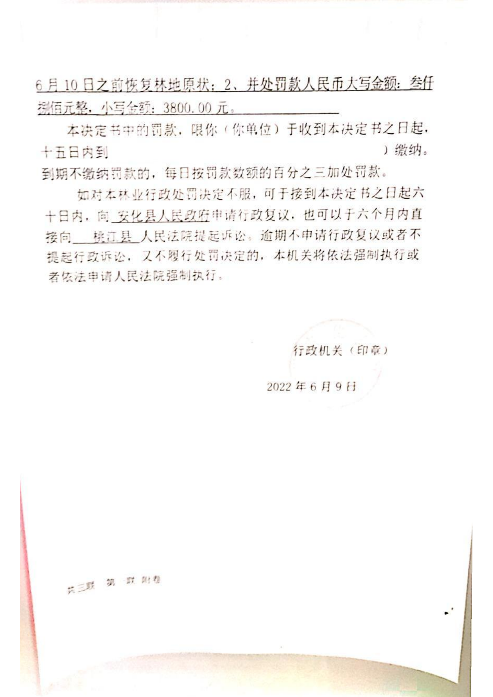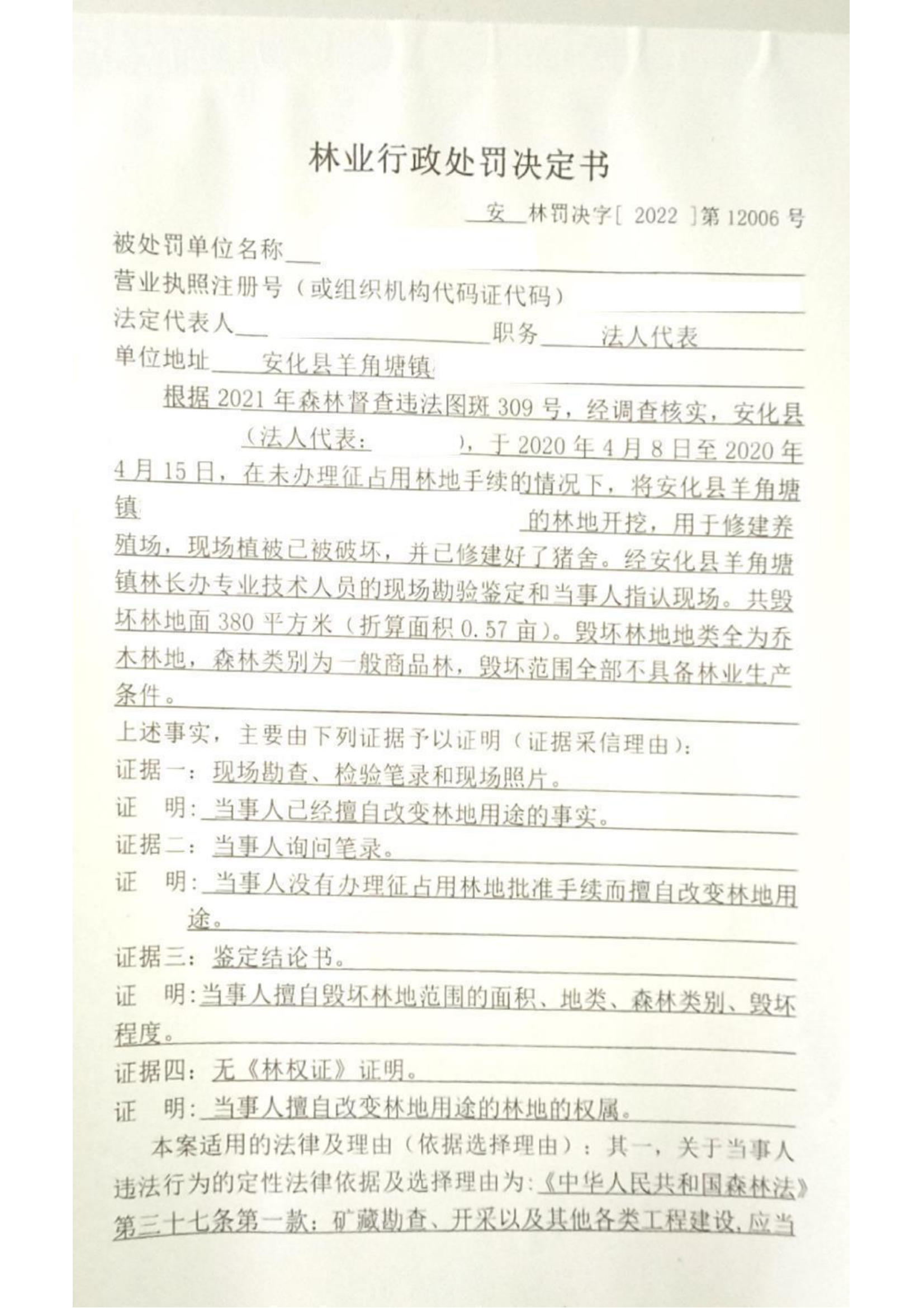 林业行政处罚决定书(安林罚决字[2022]第12006号)
