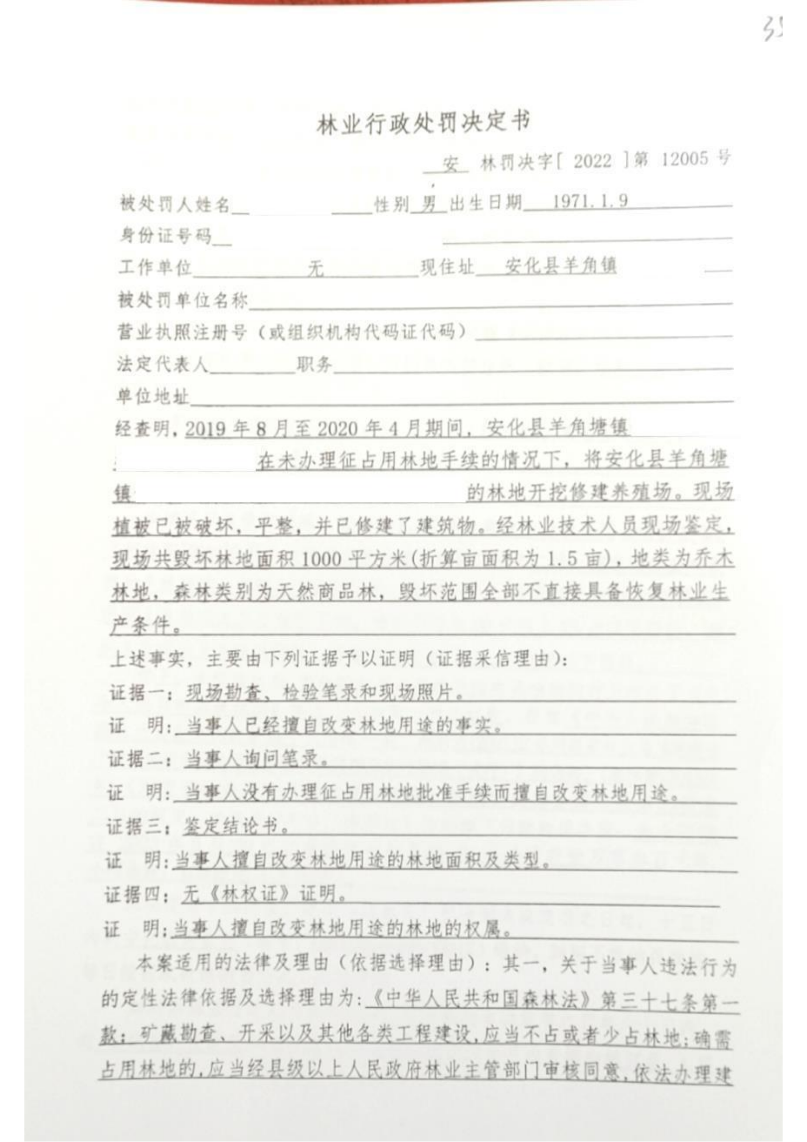 林业行政处罚决定书(安林罚决字[2022]第12005号)