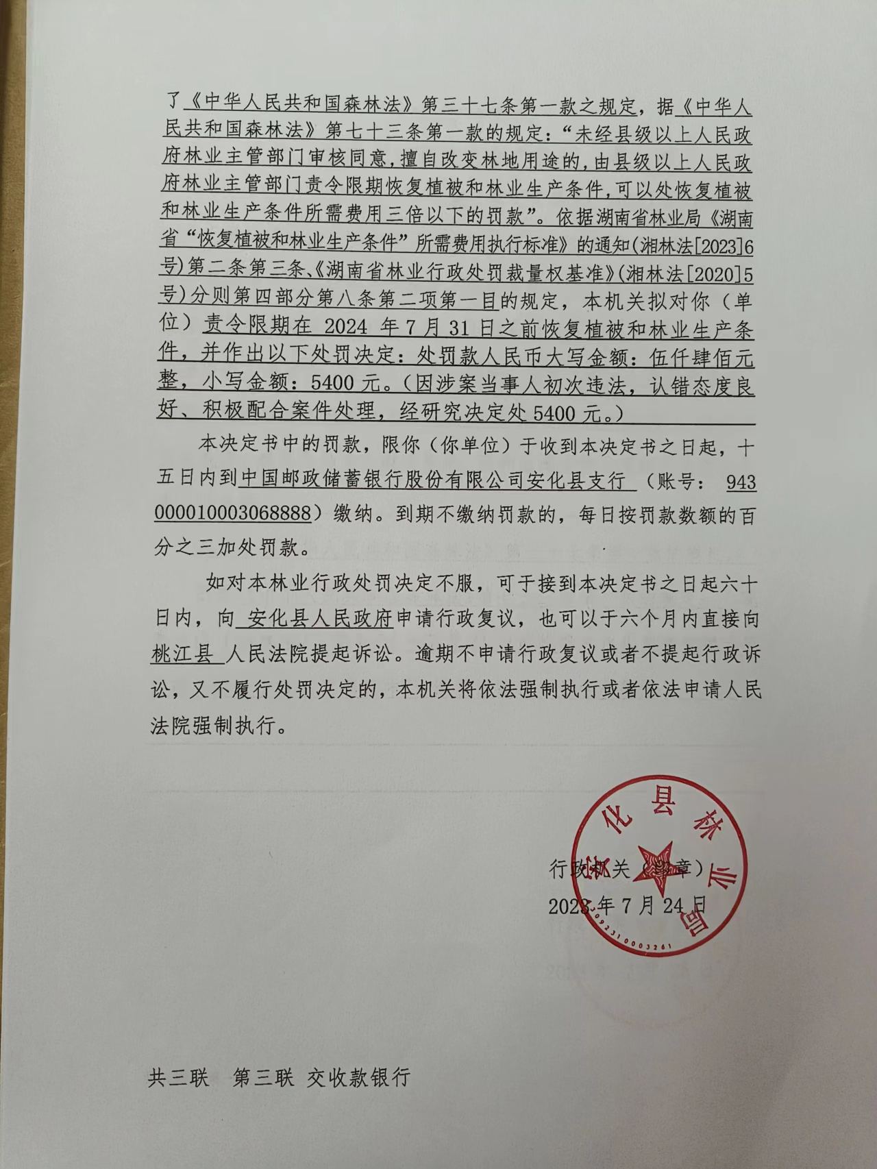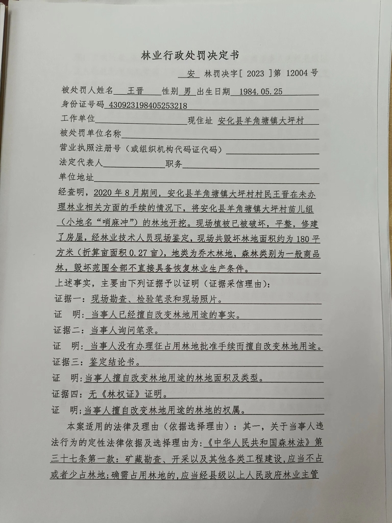 林业行政处罚决定书(安林罚决字[2023]第12004号)